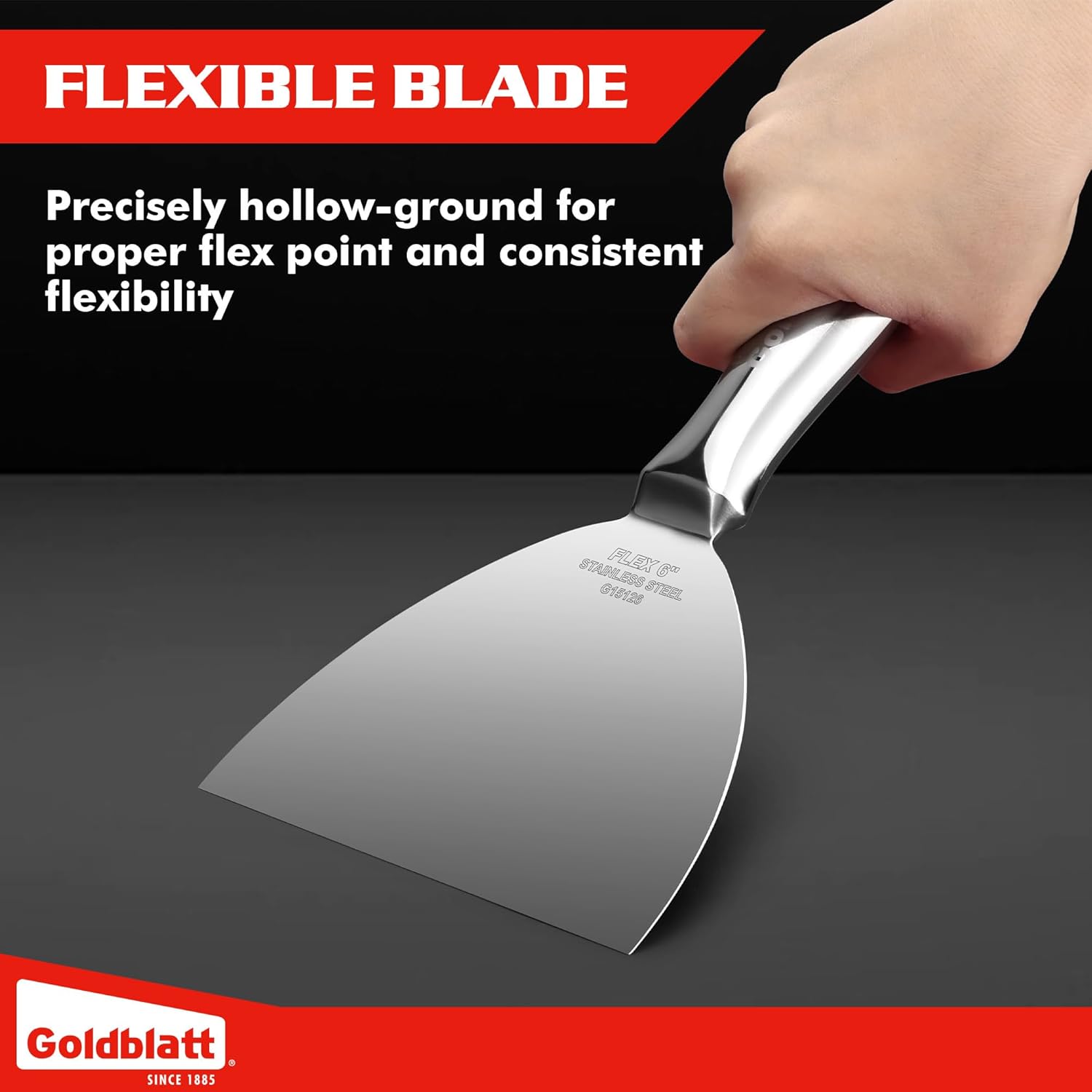 Goldblatt 6" Putty Knife, One-Piece Paint Scraper Tool, All Stainless Steel Joint Knife with Flexible Blade, Seamless Design, Metal Ergonomic Handle - for Drywall Repairing, Finishing and Scraping
