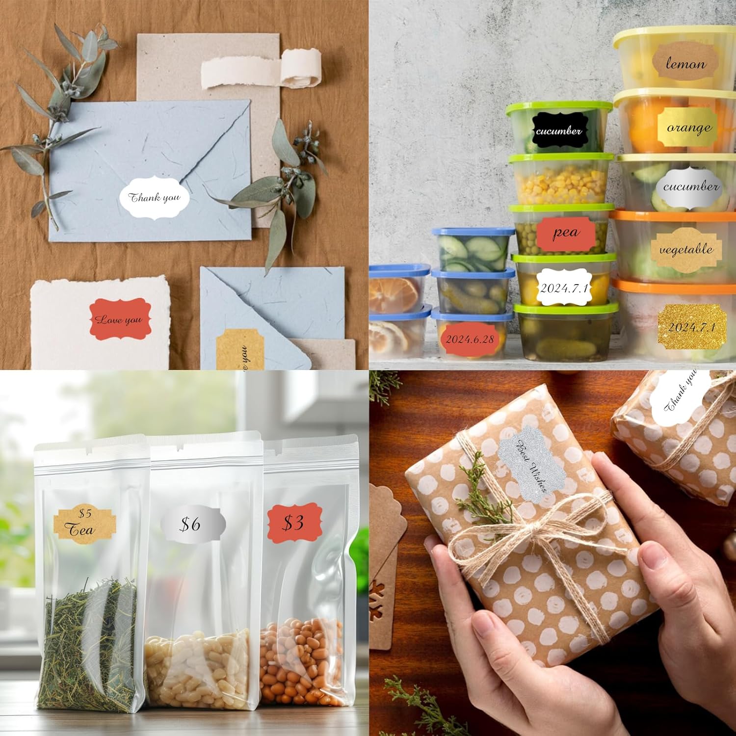 - Just need to peel off the sticker, write words and stick them where you want. With different color paper element, these sticker labels can not only be applied as Christmas gift tags, but also for wedding, birthday, mailing labels, name tags, etc.