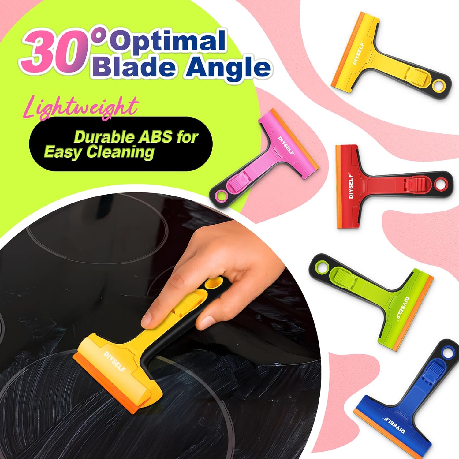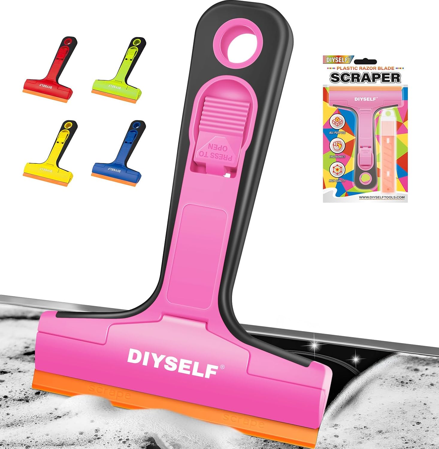 DIYSELF-Razor-Blade-Scraper, 1 Pack Razor Blade Scraper, Extra 5 PCS Orange Plastic Blades, Razor Blade Scraper Tool for Cleaning, Glass Scraper for Windows, Razor Scraper Tool for Car, Cooktop