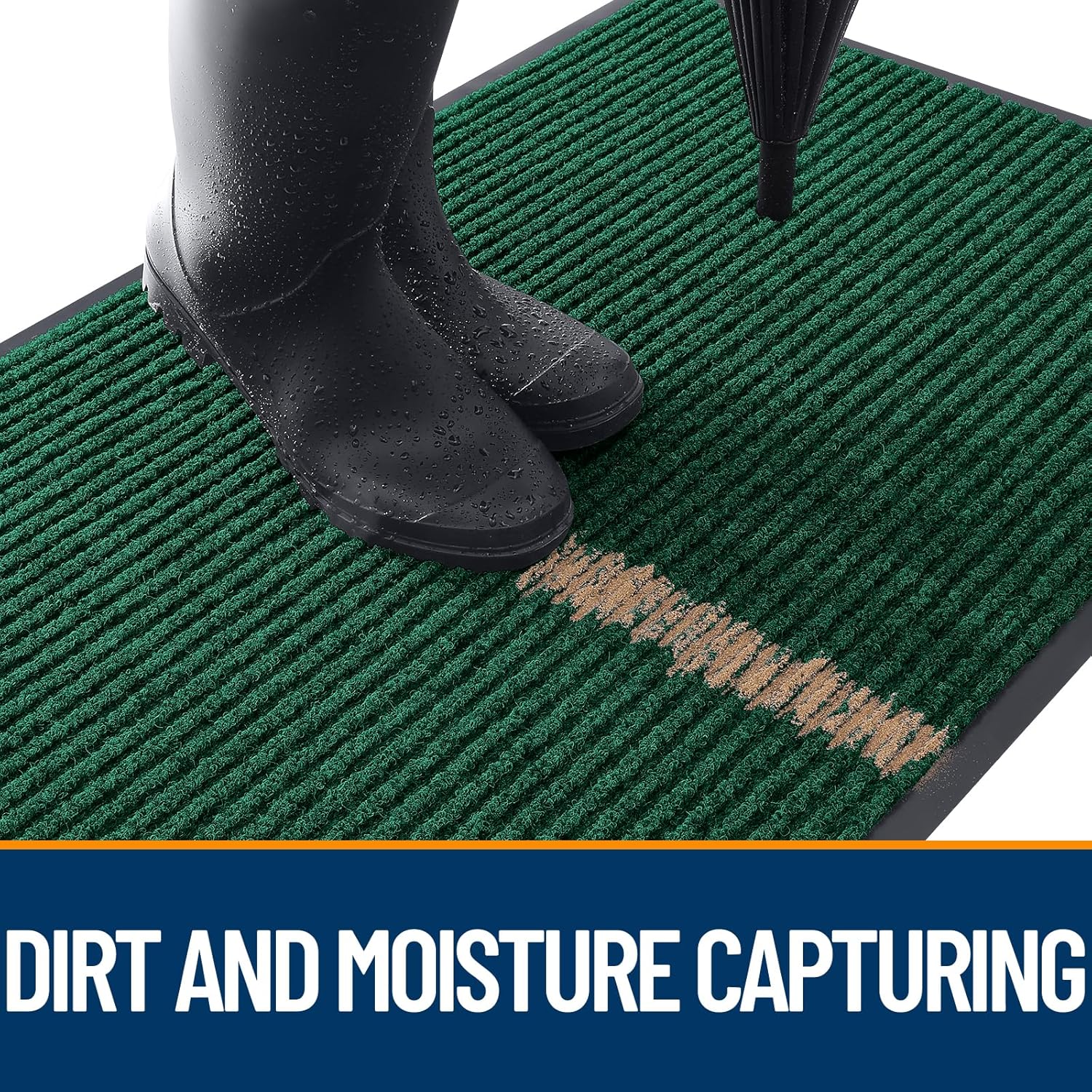OLANLY Front Door Mat Indoor Outdoor Entrance, Waterproof Heavy Duty Doormat, Fade Resistant, Low Profile, Easy Clean Patio Porch Welcome Floor Mats for Entry, 47x23, Green