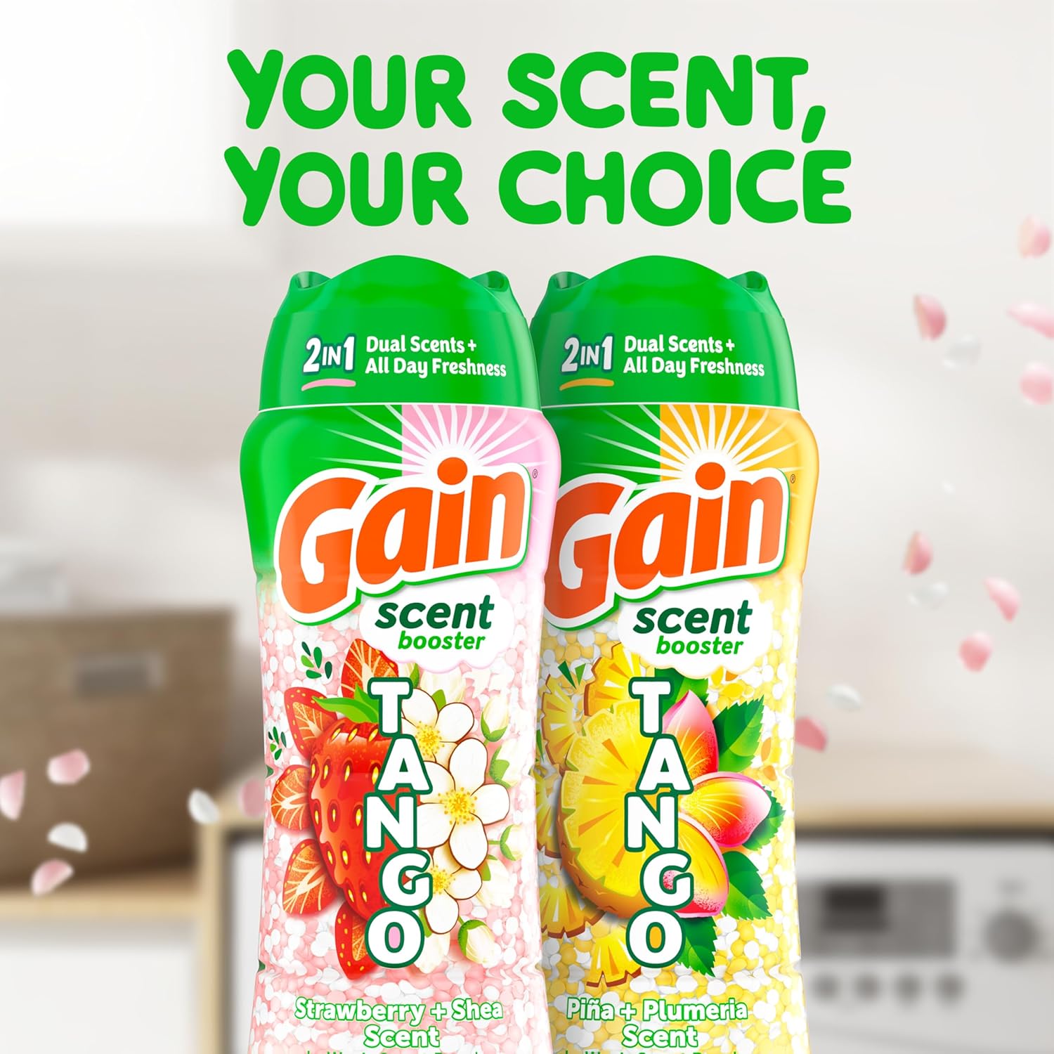 - Includes one [size] bottle of Gain Tango Dual Scent Laundry Beads in Strawberry and Shea Scent