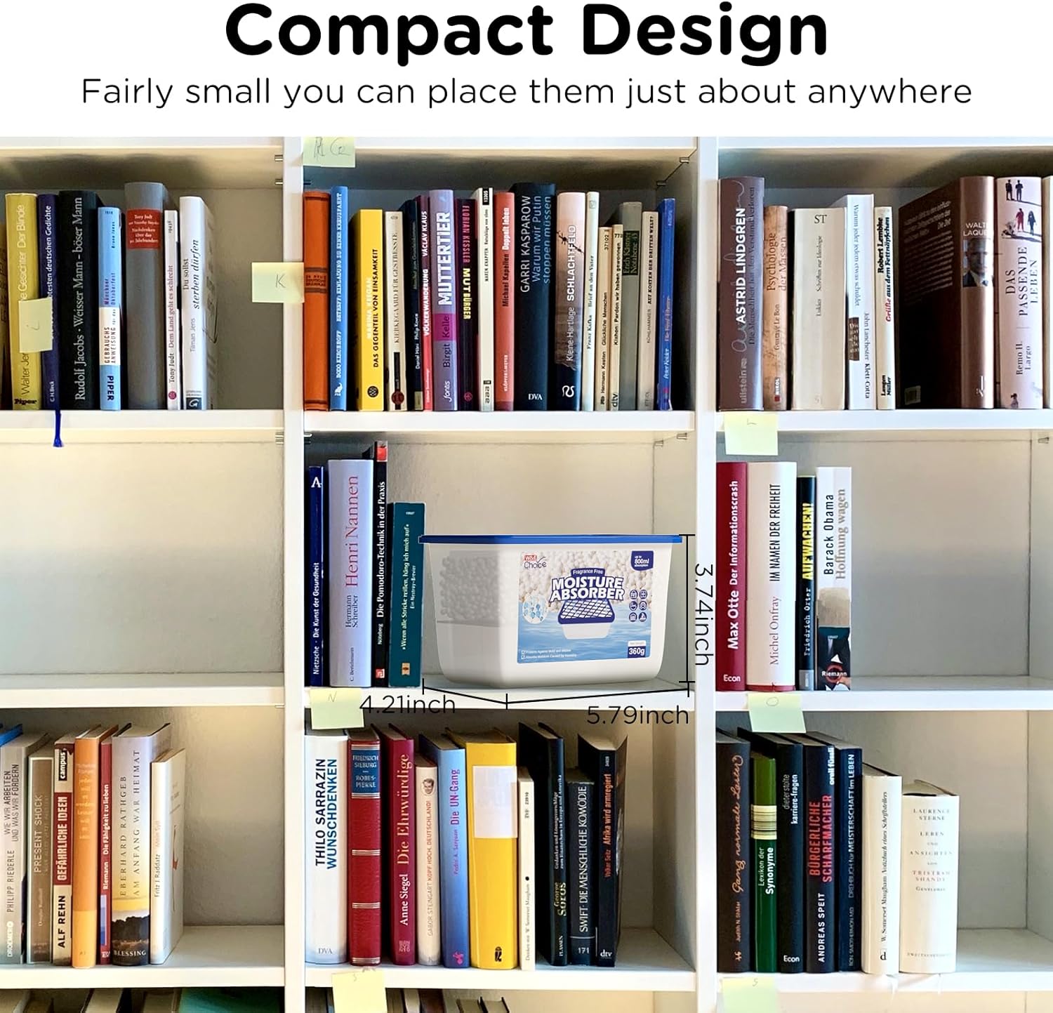 - Unscented & Extra-Large 800ml Capacity: This moisture absorber is completely fragrance-free, ensuring it won't have any unpleasant scents around you. With an 800ml collecting capacity, this moisture absorber offering extended use and fewer replacements for long-lasting dryness.