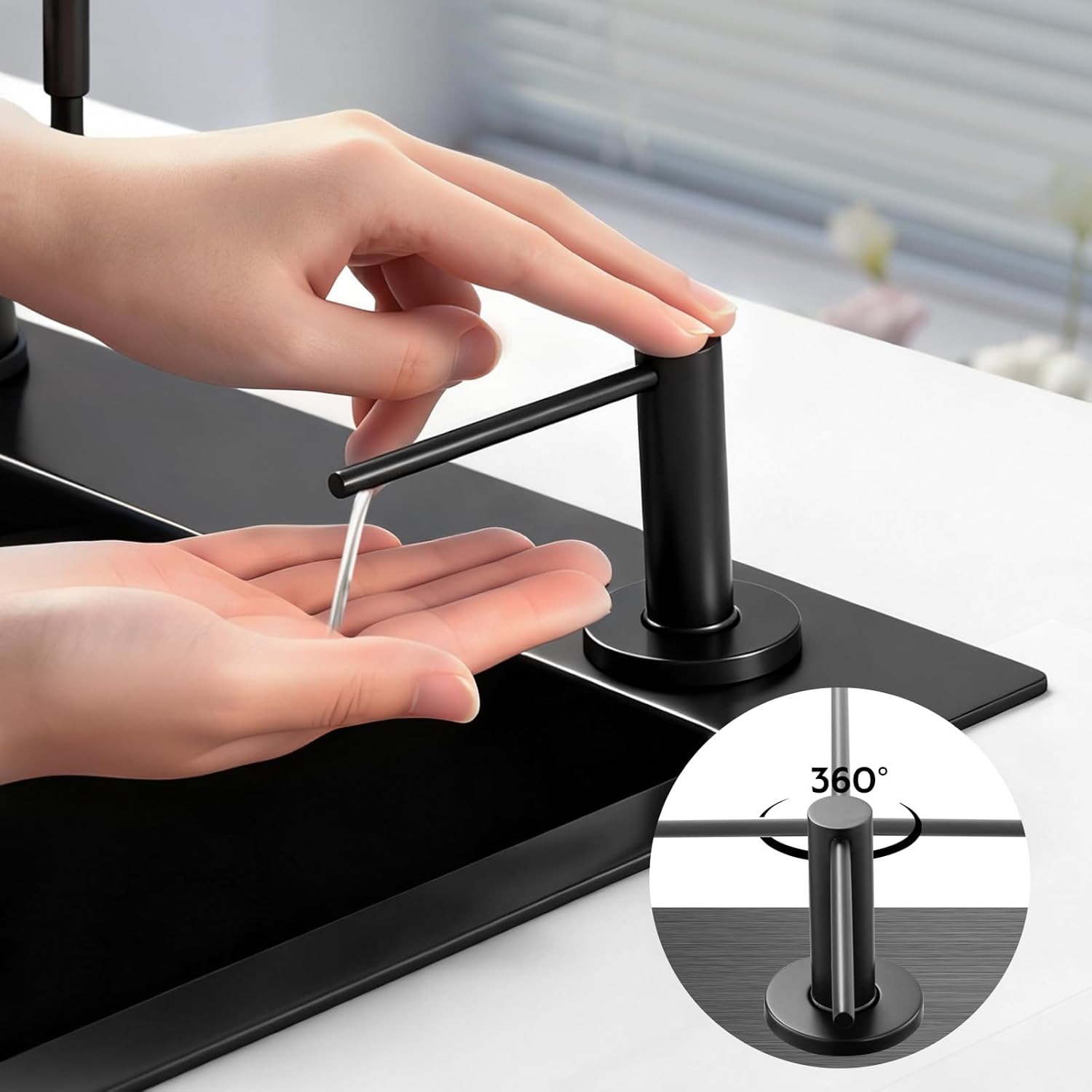 - [Multifunctional Use] This multifunctional sink soap dispenser is engineered for seamless integration in both kitchen and bathroom environments. Equally effective for dispensing dish soap near kitchen sinks and hand soap at bathroom vanities, its universal design accommodates various liquids including hand sanitizer, lotion, and baby shampoo. The corrosion resistant construction ensures long term reliability in high humidity spaces