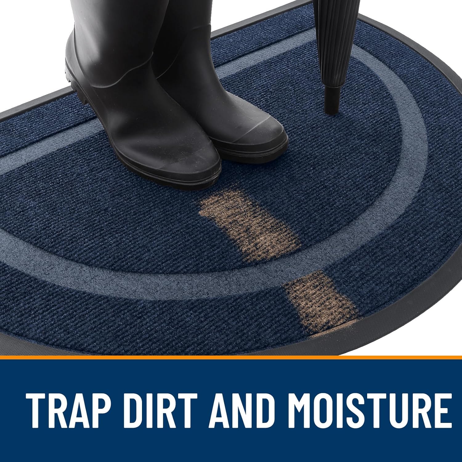 OLANLY Half Circle Door Mat Indoor Outdoor Entrance Welcome, Waterproof All-Season, All-Weather Doormat, Sturdy Natural Rubber, Low Profile, Easy Clean Patio Porch Entryway Mat, 29.5x17, Blue