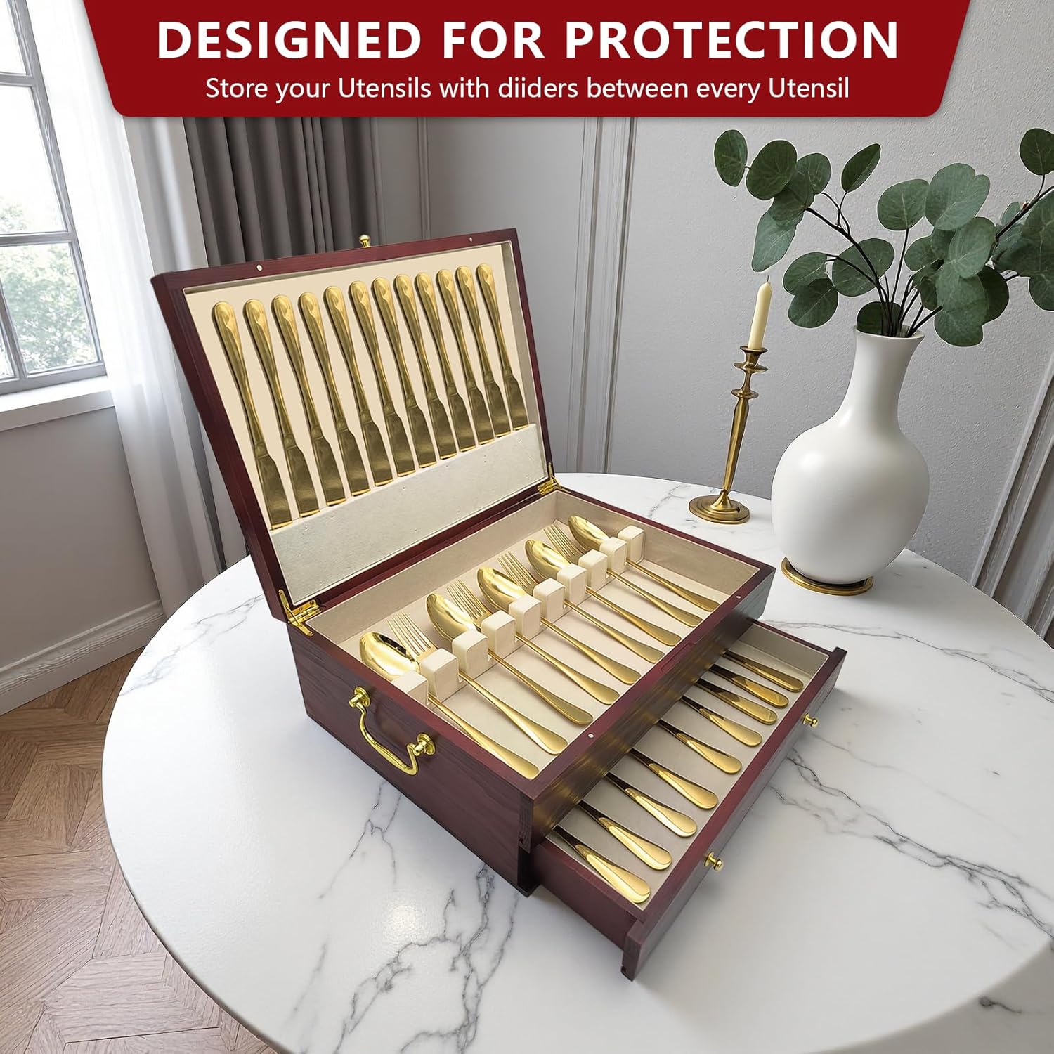 - Craftsmanship and Quality Materials: We take great pride in the craftsmanship of our silverware storage box. We emphasize the use of high-quality materials to ensure your silver pieces remain bright, shiny, and lustrous.