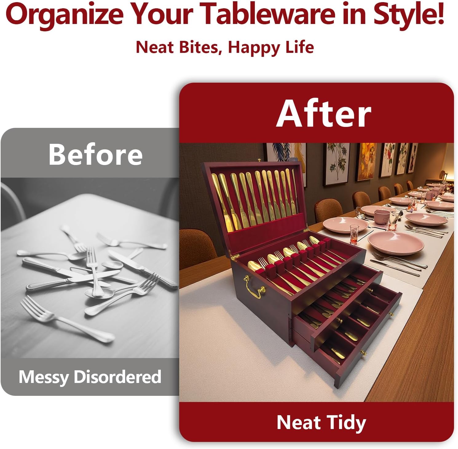 - Craftsmanship and Quality Materials: We take great pride in the craftsmanship of our silverware storage box. We emphasize the use of high-quality materials to ensure your silver pieces remain bright, shiny, and lustrous.
