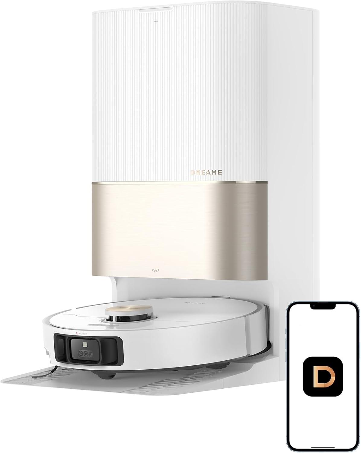 DREAME X40 Ultra Robotic Vacuum with Removable & Liftable Mop, 12,000Pa Suction, Side Brush Extensive Cleaning, 158°F Mop & Washboard Self Cleaning, Auto-Empty, Auto Refill, liftable Brushes White