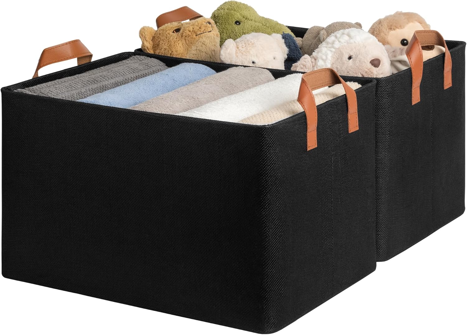GRANNY SAYS Storage Baskets for Shelves, Closet Organizer Bins, Clothes Storage Bins with Metal Frame, Extra Large Baskets for Organizing and Storage, Collapsible, Black, 2-Pack