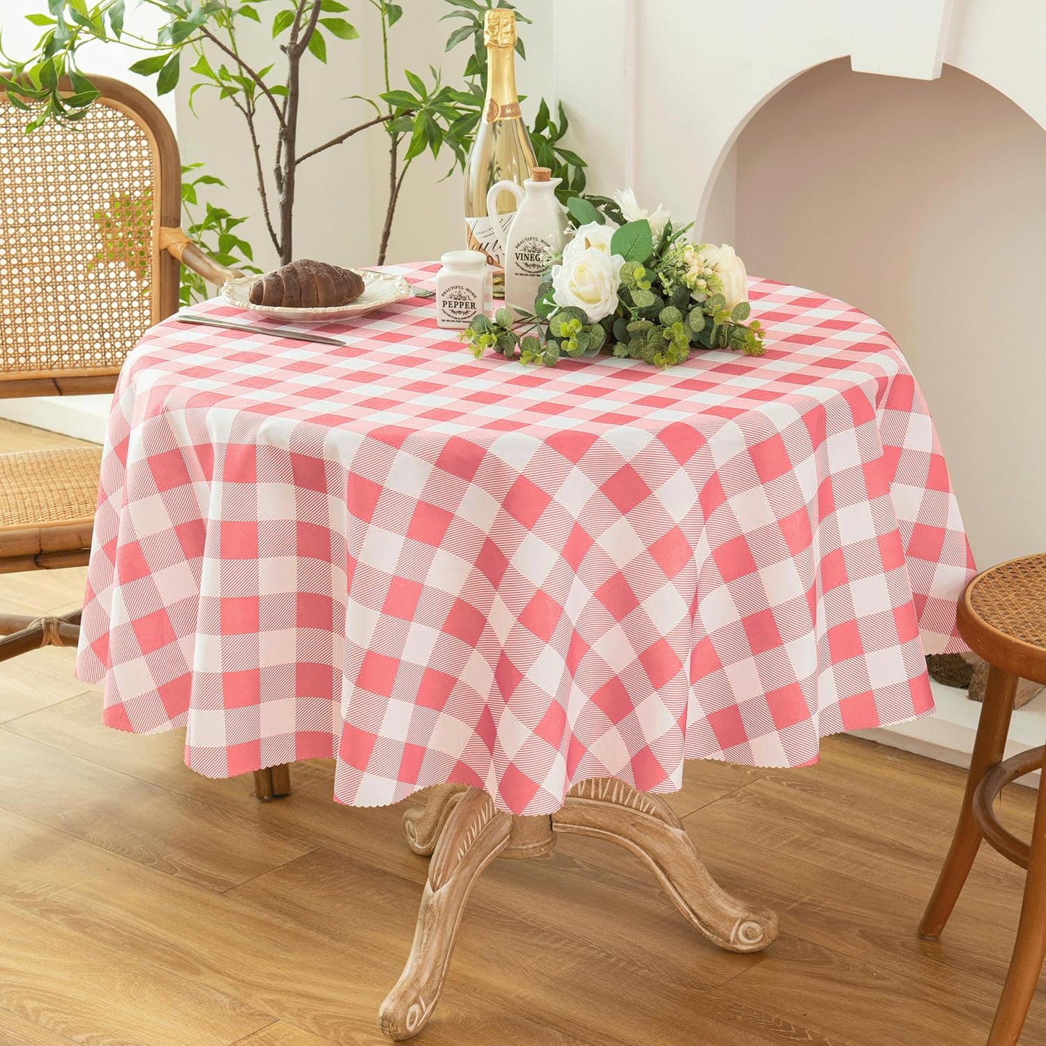 Waterproof Plaid Tablecloth Fabric - Round 58 Inch Classic Gingham Checker Table Cloth for Indoor/Outdoor Use - Buffalo Table Cover for Picnics, BBQs, and Parties
