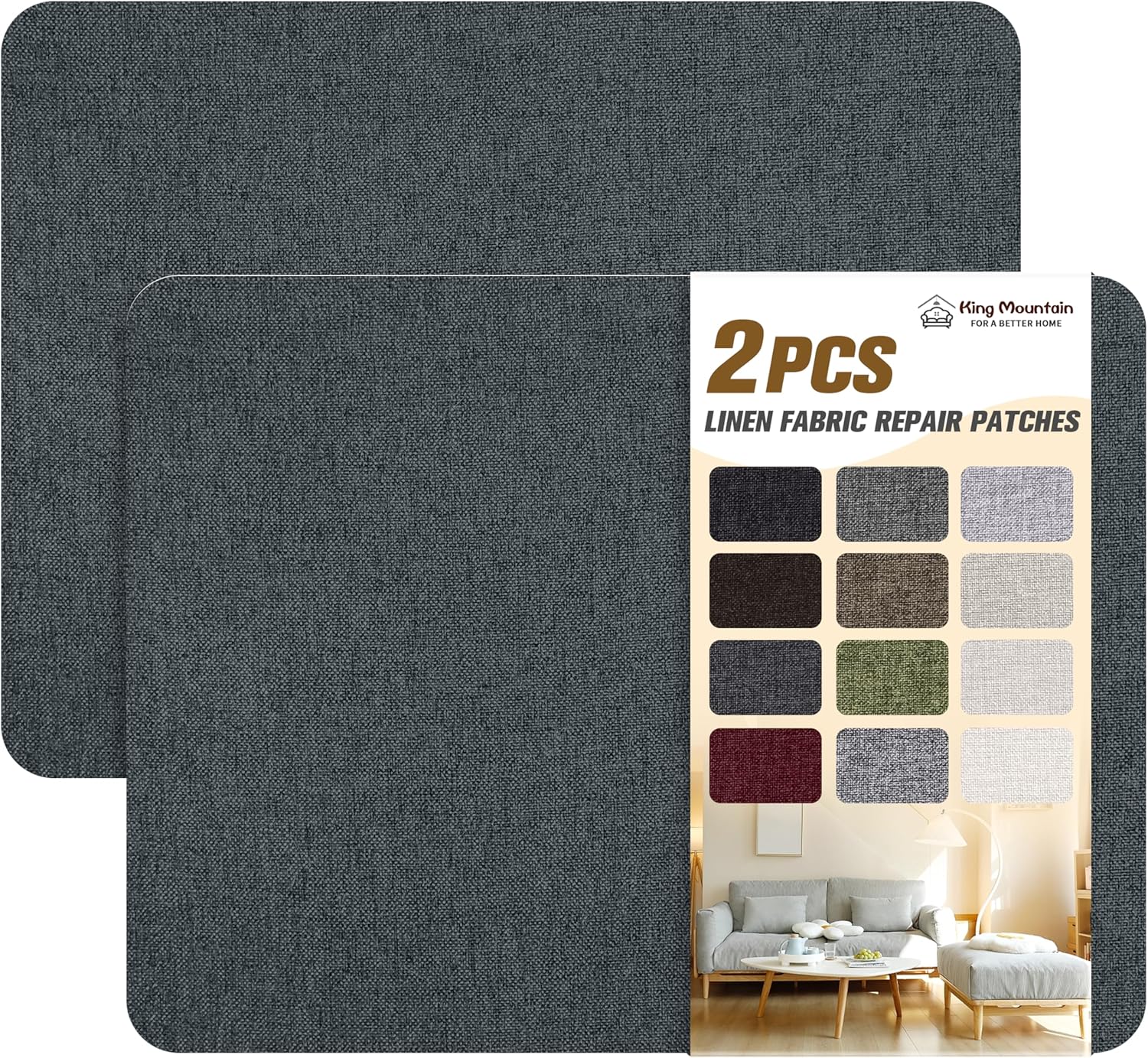 KING MOUNTAIN Fine Linen Repair Patches, Self-Adhesive Linen Fabric Patches, 8X11 inch Extra Size, Multi Color, Can be Used for Linen Sofa Repair and Linen Clothes Repair(8" x 11"-2PCS,Charcoal Gray)