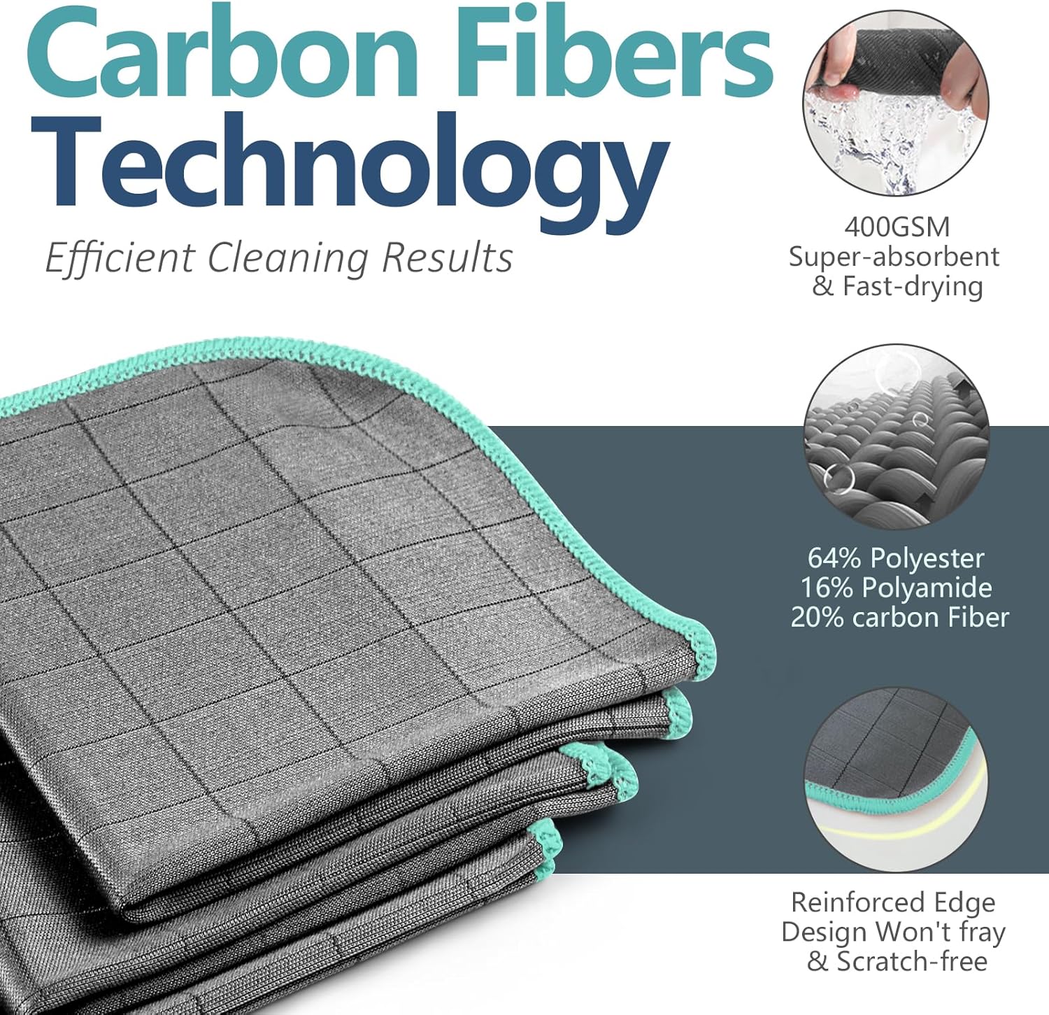 - Carbon Fiber Technology: Airlab streak free miracle microfiber cleaning cloth, made of fabrics up to 400 GSM thickness and incorporating carbon fibers with high tensile strength and dimensional stability, is more absorbent and durable
