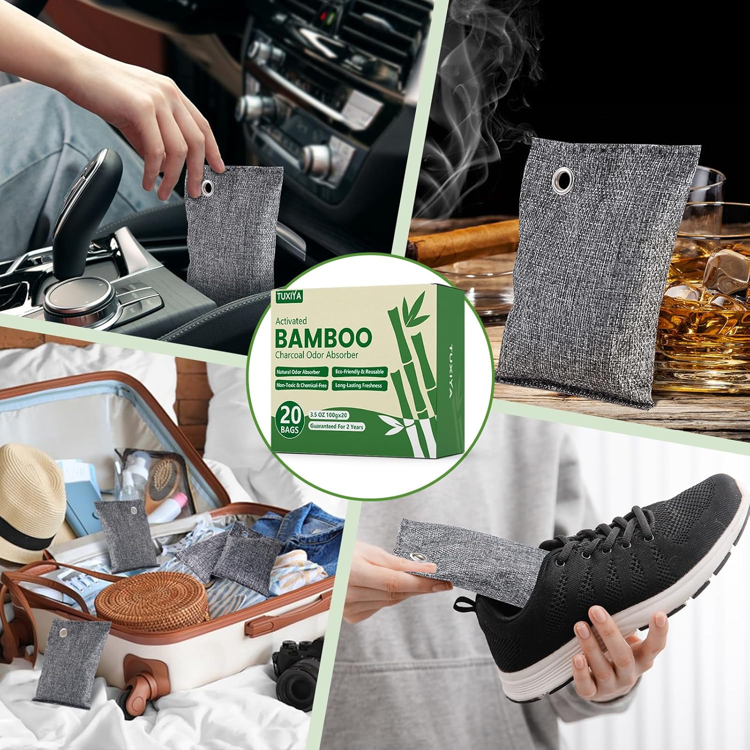 - 【Odor Eliminator for Strong Odor】:Freshen your car, home, or shoes with our bamboo charcoal air purifying bag. These natural air purifying bags eliminate unwanted smells like pet odors, basement mustiness, and more—acting like sponges to absorb odors and refresh the air.