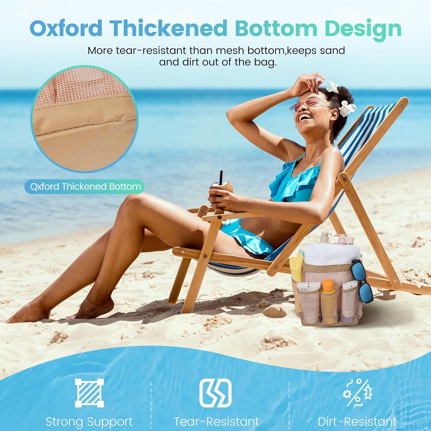 - Reinforced Base, Stronger Support:For the most essential part of this beach bag, we utilize highly strong and durable Oxford fabric for the bag base, delivering higher weight capacity, wear and tear resistance. The base supports travel essentials firmly and keeps them away from sand.