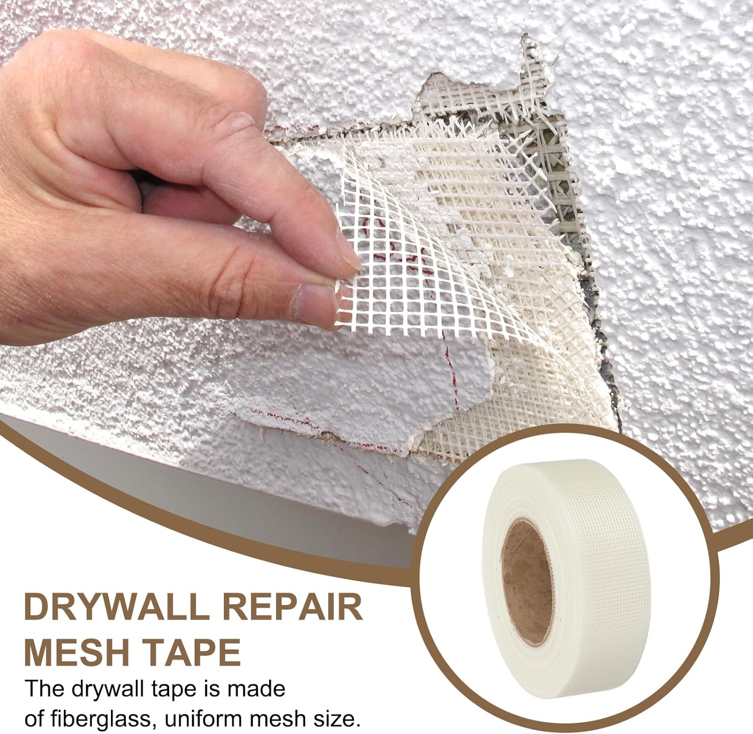 - Application - This mesh tape is a great engineering material for drywall repair. It fixes cracks, joints, and holes in gypsum board or concrete, and connects particle board, cardboard, and other panels. It's also waterproof and prevents cracks, making it great for indoor wall decoration and strengthening the underlying wall.