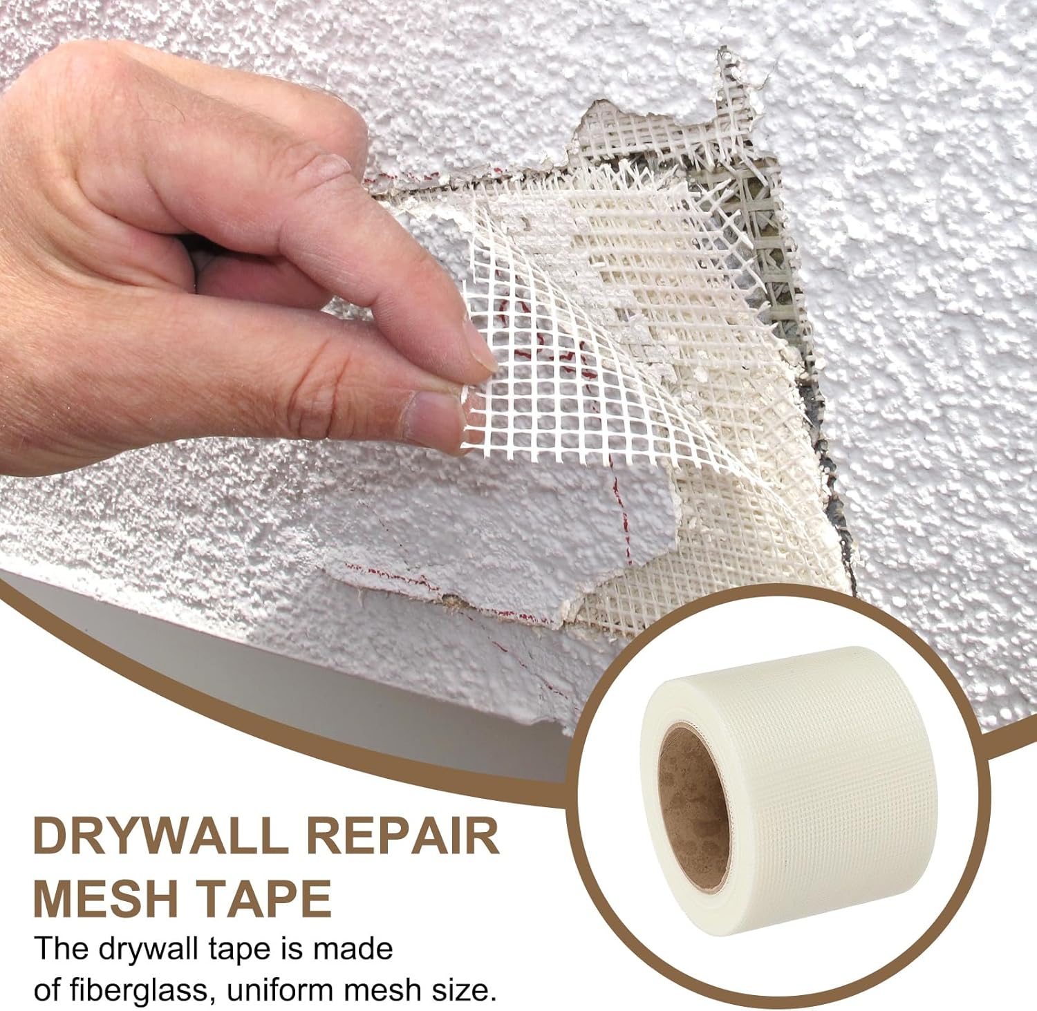 - Application - This mesh tape is a great engineering material for drywall repair. It fixes cracks, joints, and holes in gypsum board or concrete, and connects particle board, cardboard, and other panels. It's also waterproof and prevents cracks, making it great for indoor wall decoration and strengthening the underlying wall.