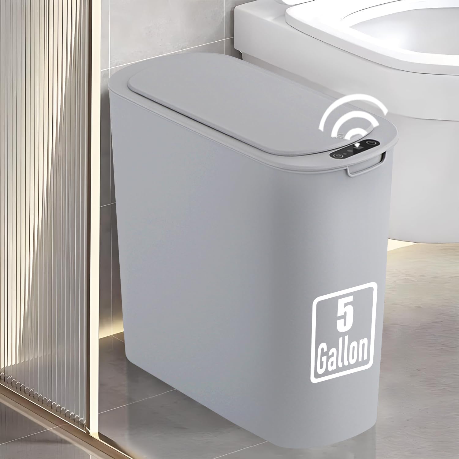 5 Gallon Motion Senor Bathroom Trash Can with Lid, Automatic Garbage Can Touchless, Smart Plastic Waste Basket for Narrow Spaces, Bathroom, Office, Bedroom, Living Room (Gray)