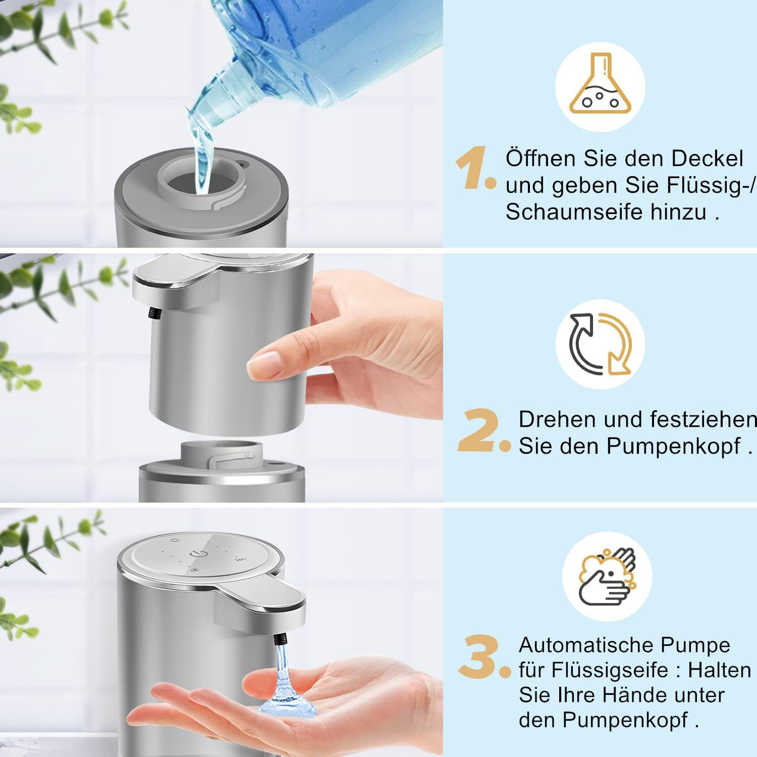 - 🌻 【USB Type-C Charge Liquid Soap Dispenser】-- Built-in 1200 mAh battery(It usually takes 2-3 hours to charge) allows this foam soap dispenser could last for 20-60 days on a single charge (Base on the frequency of use) , USB Type-C Rechargeable automatic soap dispenser no need to replace your battery .