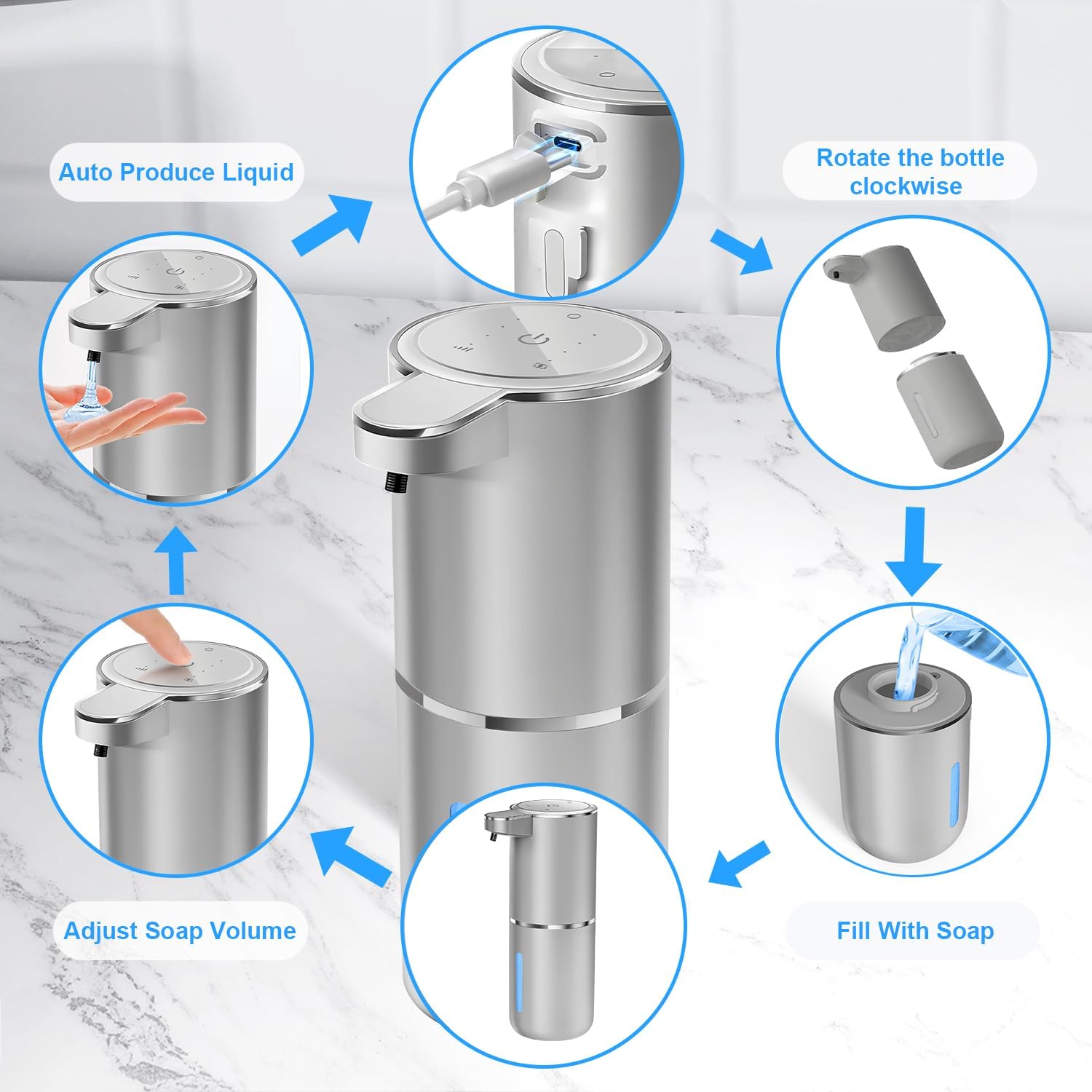 - 🌻【IPX5 Waterproof Level Foaming Soap Dispenser】-- IPX5 waterproof design can effectively avoid soap or water from corroding the electric soap dispenser , USB charging port rubber plug effectively waterproof .