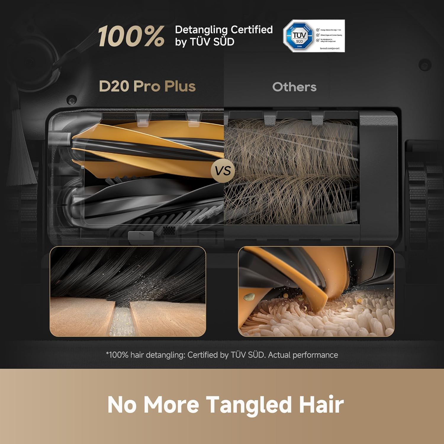 - Powerful Suction, Easy Hair Cleanup: Featuring impressive 13,000Pa Vormax suction power, D20 Pro Plus effectively tackles dust and debris on multiple surfaces. Coupled with the innovative HyperStream detangling DuoBrush, it captures hair efficiently while reducing tangling issues.