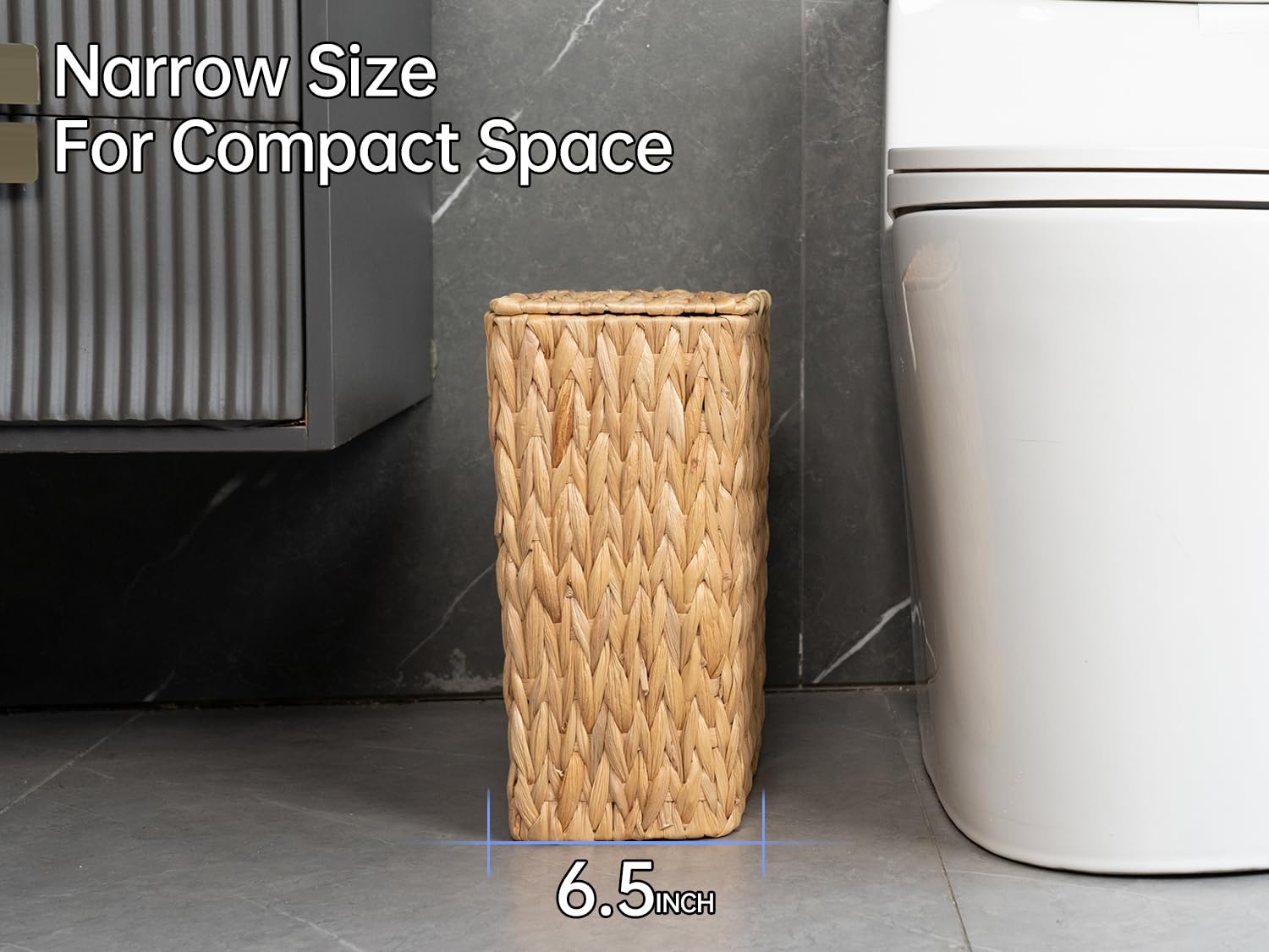 3 Gallon Wicker Trash Can,Small Bathroom Trash Can with Lid,Natural Water Hyacinth Wicker Waste Basket for Bedroom,Toilet,Narrow Garbage Can with Removable Liner