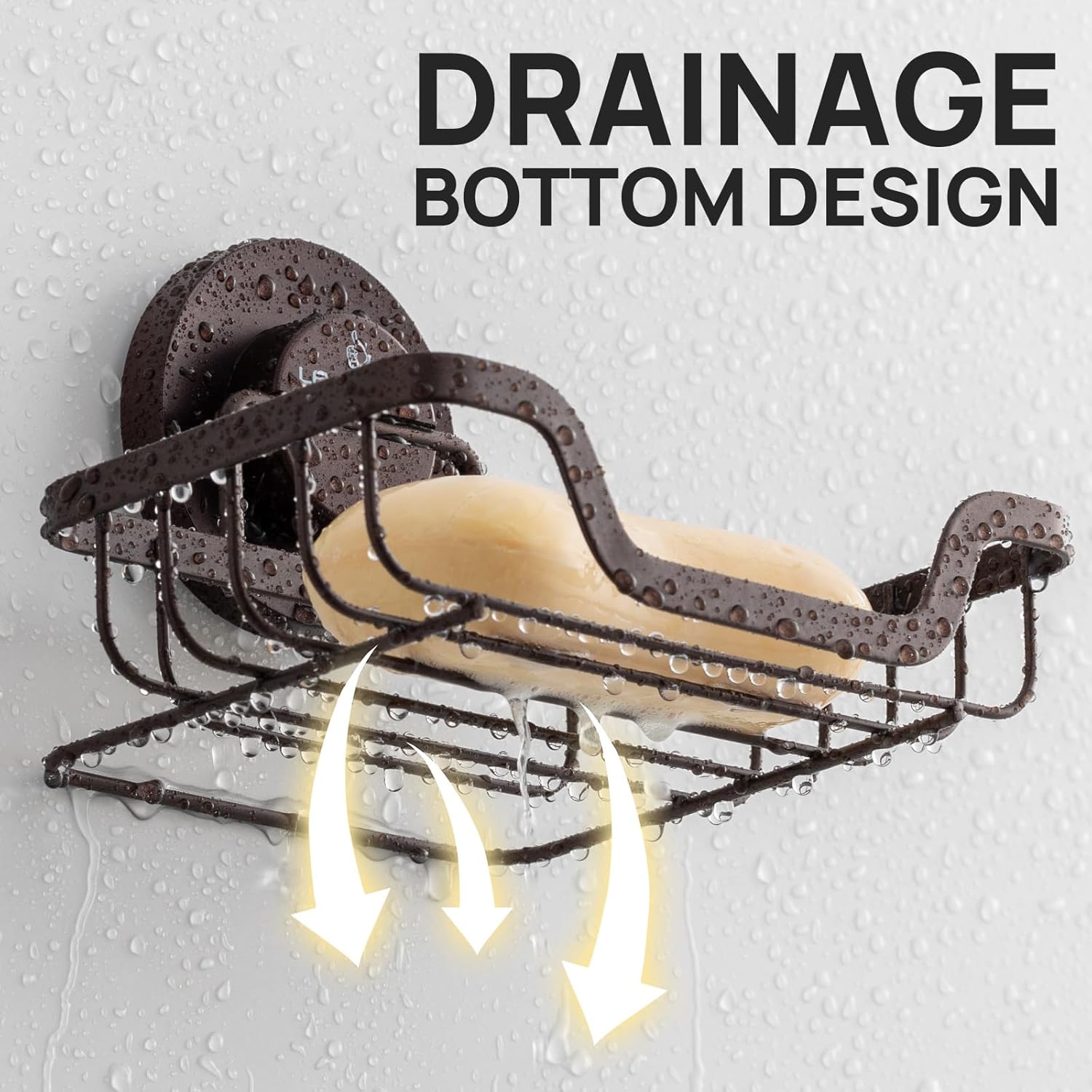 LEVERLOC Soap Dish, Soap Bar Holder for Shower Suction Cup Wall Mounted, Stainless Steel No-Drilling Removable Waterproof Sponge Holder for Bathroom Bathtub Kitchen Sink, Keep Dry, Brown
