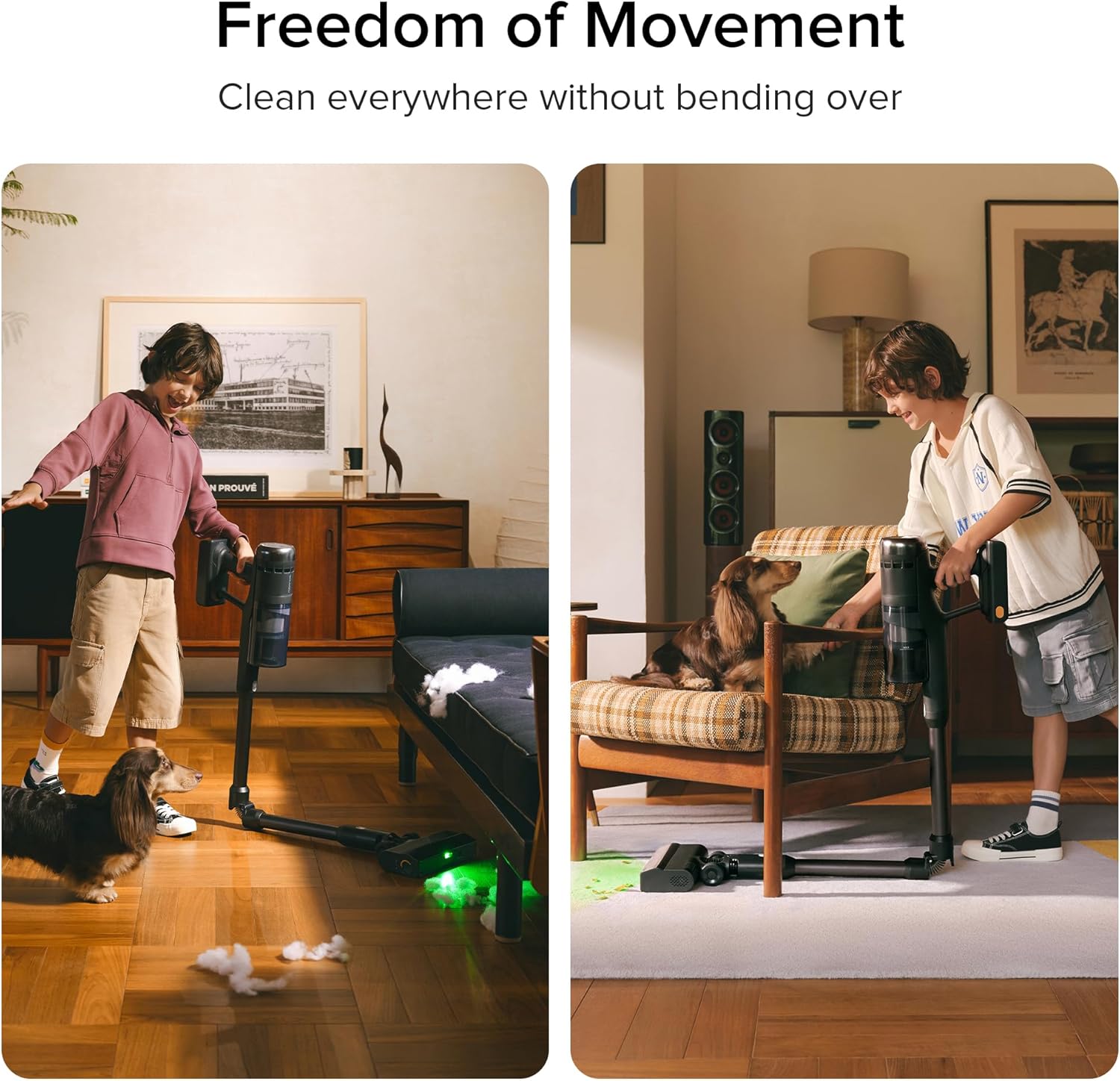 - Versatile Tools for Every Surface: From hardwood and tile to thick carpets, the V-shaped roller and multi-surface accessories help you handle any mess. Particularly suitable for pet hair, upholstery, and car interiors.