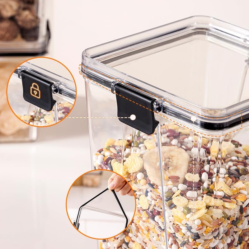 - Made of food grade material, they are BPA free. These pantry storage containers are not only long-lasting, but they will also be effortless to clean.With the great sealing performance,airtight food storage containers can keep your food fresh.