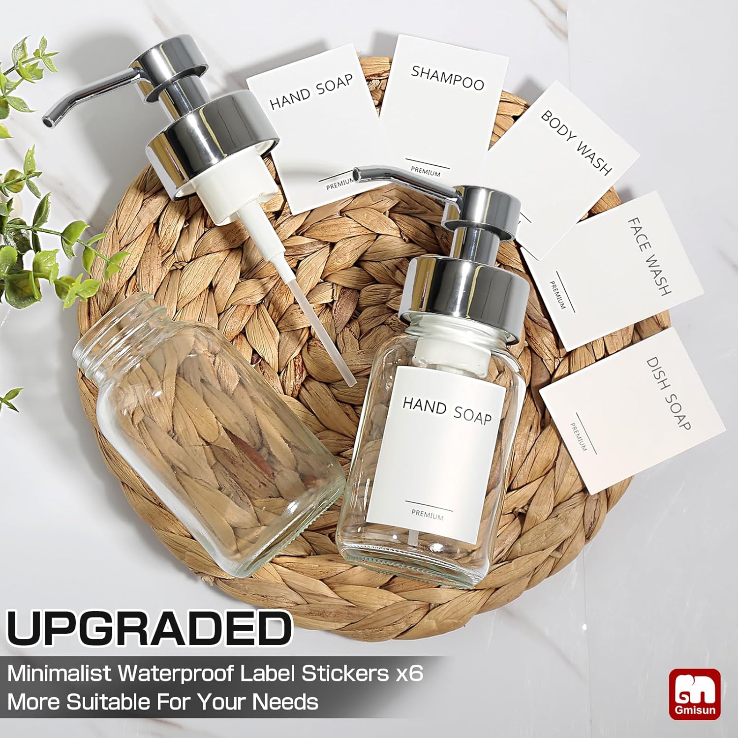 - 【6pcs Waterproof Label Stickers】Bathroom hand soap dispenser set comes with 6pcs of waterproof label stickers for you to choose from. The set contains shampoo, body wash, dish soap, face wash, and 2 hand soap labels to help you recognize and organize them well. The label stickers have waterproof coatings, which effectively keep water from touching the paper, and will not become wet or warp. It excellently suits for bathroom and kitchen sink that are prone to moisture.