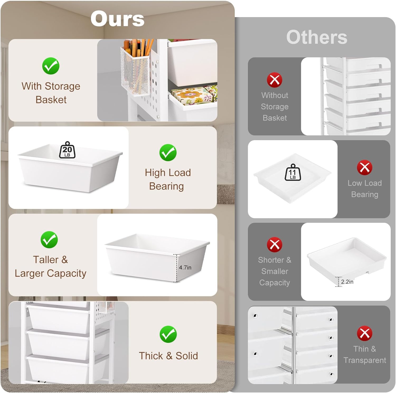 - 【Multipurpose for Any Space】 This rolling cart with drawers fits a wide range of needs. Perfect for storing sewing kits, art supplies, tools, school items, documents, cosmetics, or snacks. Ideal for your home office, studio, classroom, craft corner, or vanity area.