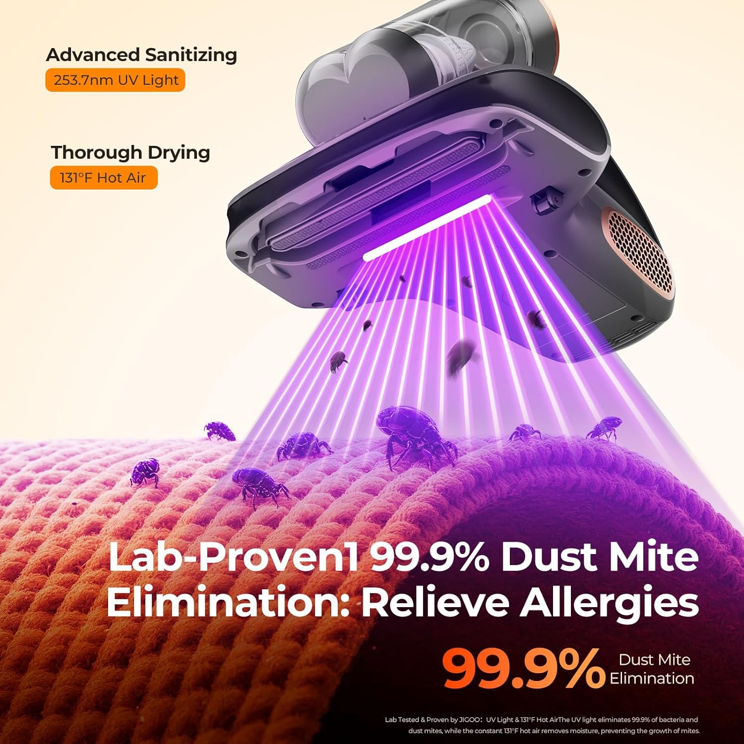 JIGOO Mattress Vacuum Cleaner with UV-C Light, Bed Vacuum Cleaner with Dust Sensor, Ultrasonic and High Heating, Deep Cleaning Bed Vacuum for Sofa Bed Fabric Surface (S100 Cordless)