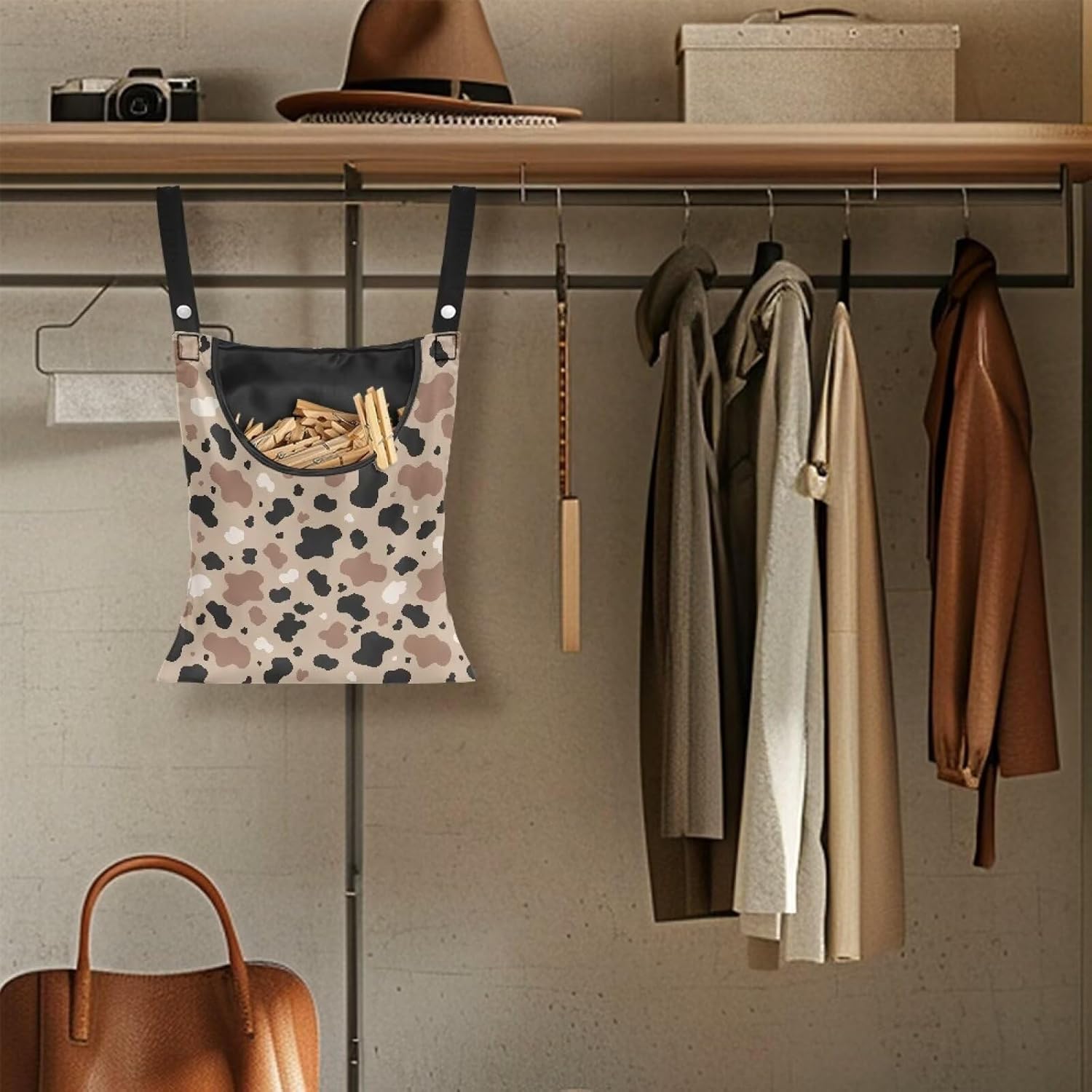Clothes Pin Hanging Bag, Clothes Pins Bag Holder Outdoor Stylish Clothespin Bag with Hanging Rope for Clothespin - Cow Pattern