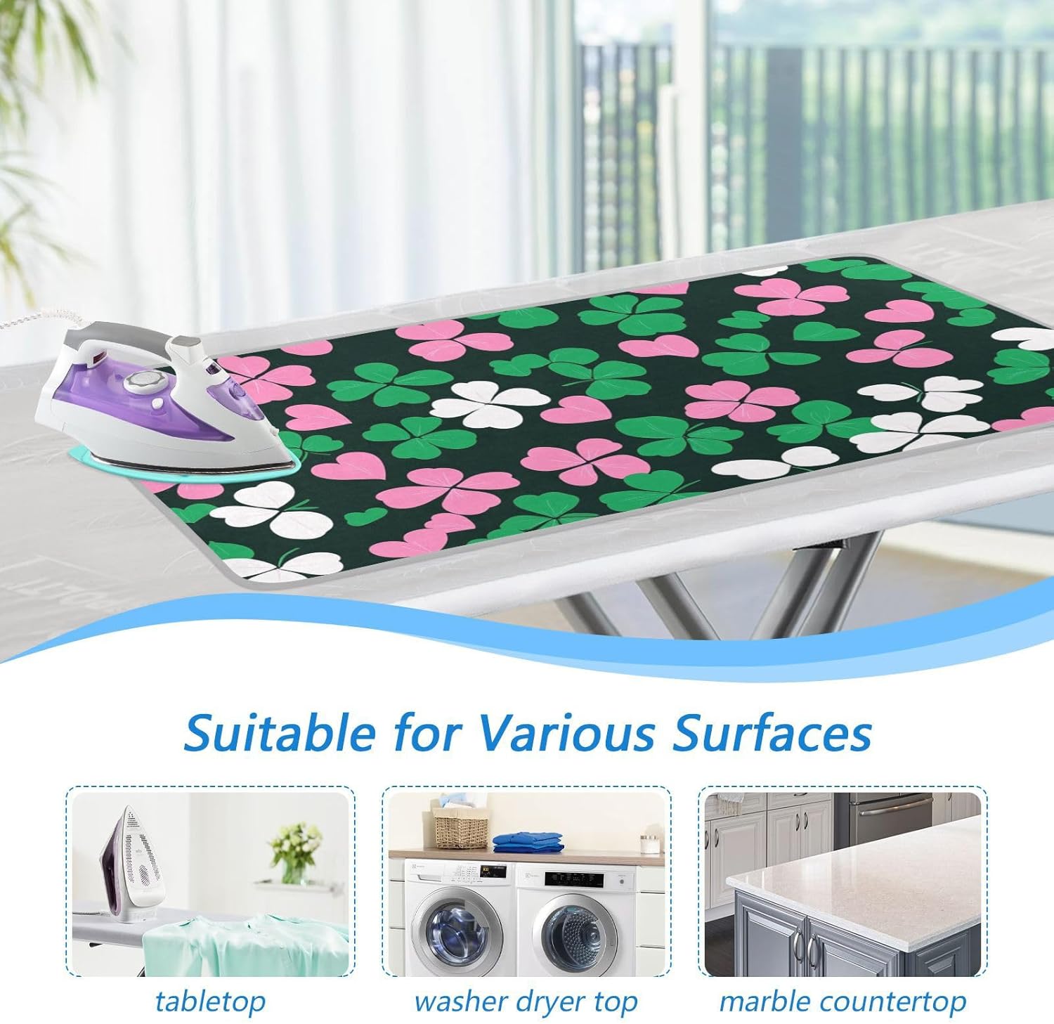 - Double-Side Use: Our ironing pad mat is one-side printed with multiple patterns, but it can be used on both sides. Our ironing board mat comes with a silicone ironing rest pad and can protect your countertop effectively, itβs a reliable and easy tool to store your hot iron freely on table, countertop or storage area. Our ironing pad is the perfect replacement for a heavy-duty, full-size ironing board