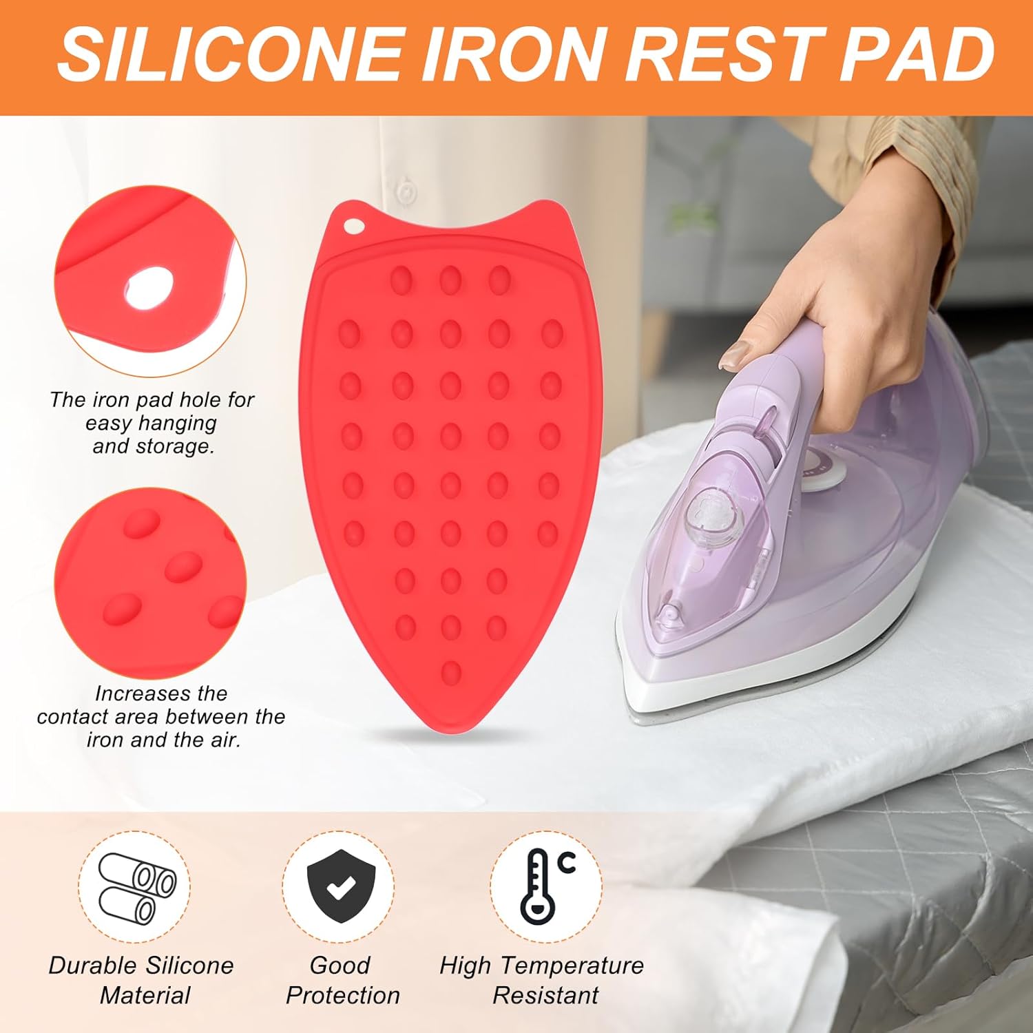 - This multifunctional silicone iron rest pad is designed for surface protection and daily use. It can protect your desktop or furniture from being burned or scratched by a high-temperature iron. It is suitable for household ironing boards and steam iron insulation pads.