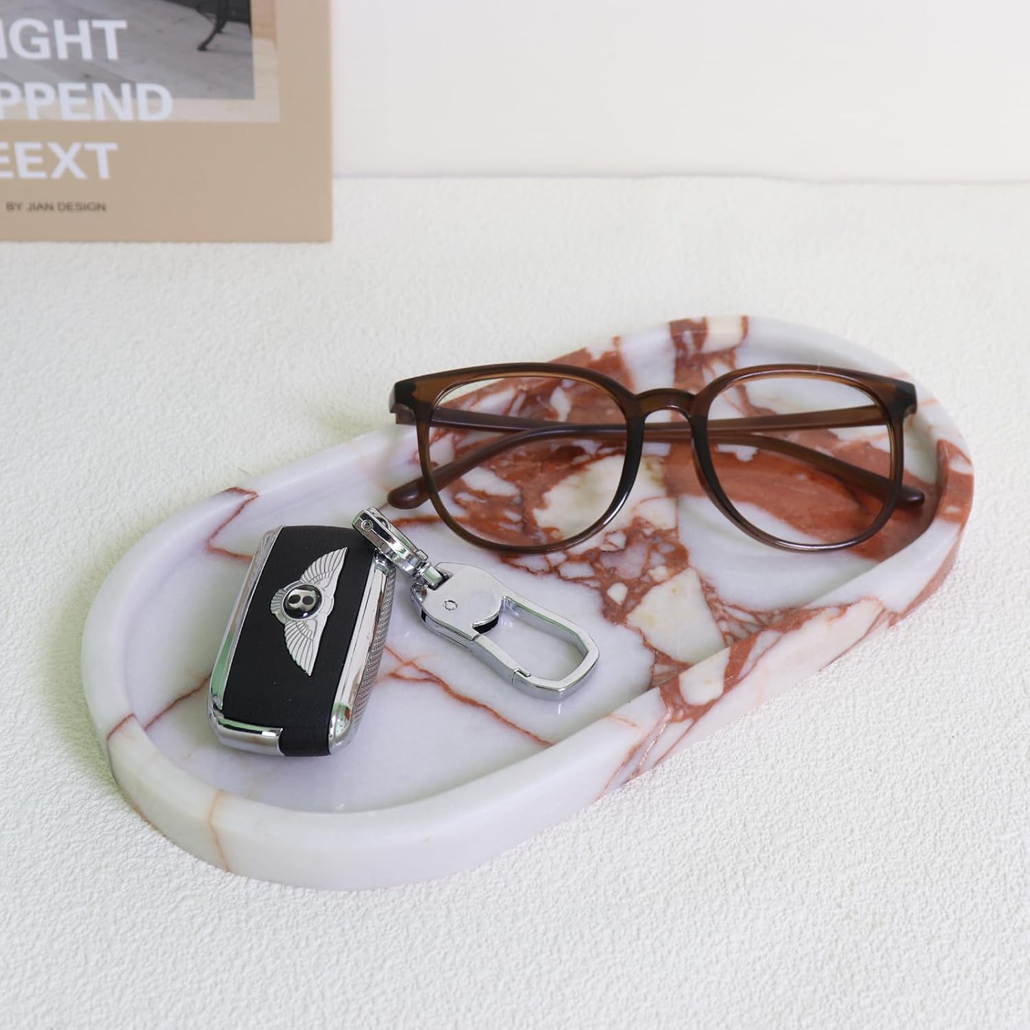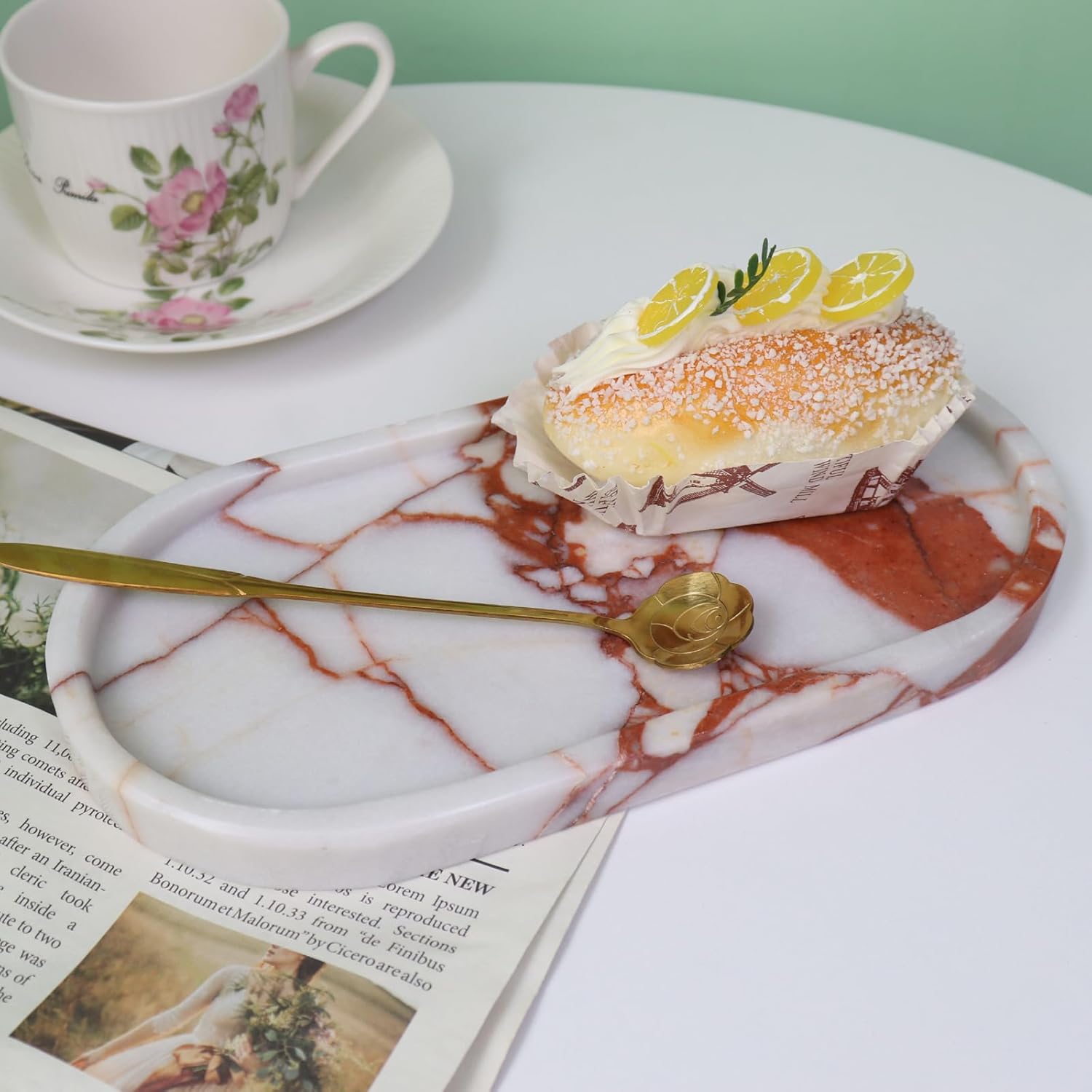 Natural Marble Tray, Oval Vanity Decorative Tray for Bathroom Counter, Countertop Stone Organizer, Catchall Tray for Kitchen, Perfume, Candles, Jewelry Dish Decorative Tray