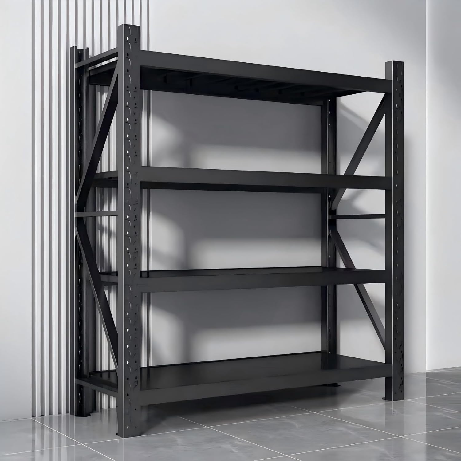 - VERSATILE STORAGE: Four-tier configuration provides ample space for organizing inventory, equipment, boxes, and supplies in warehouses or storage facilities