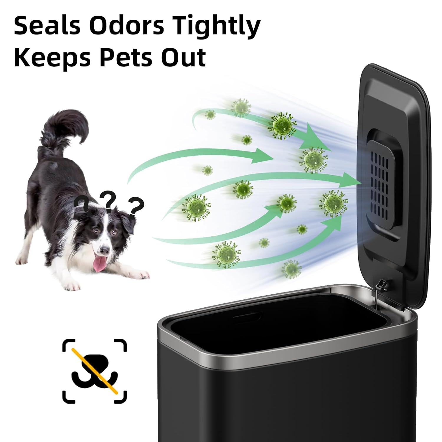 - Waterproof & Easy to Clean-Stainless steel trash can does not rust and the surface is anti-fingerprint, It can be easily cleaned with a simple wipe, ensuring a fresh and clean appearance.