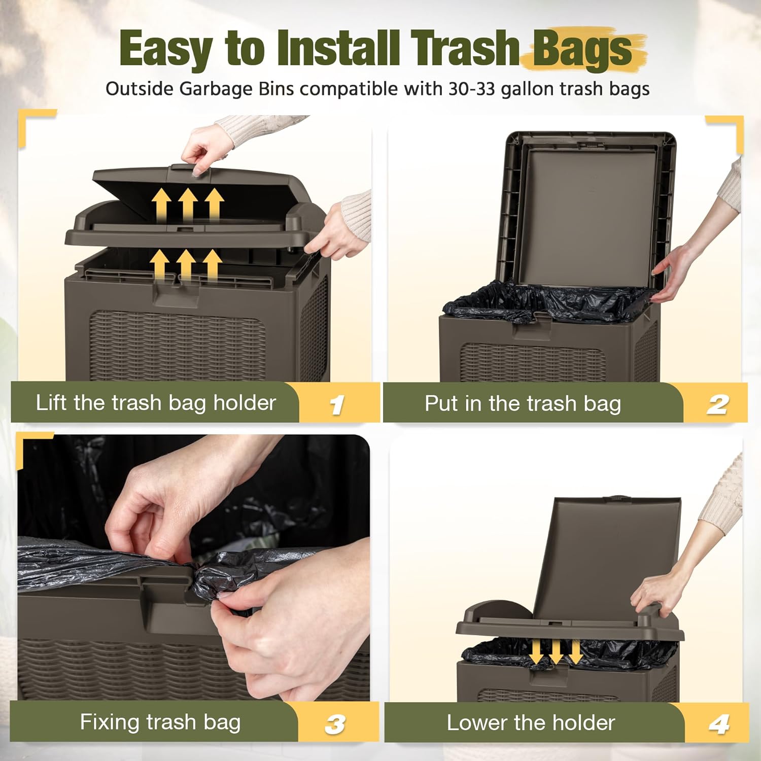 - Various Outdoor Scenarios: Our outdoor trash cans are perfect for use on patios, pools, poolside, porches, gardens, backyards and more