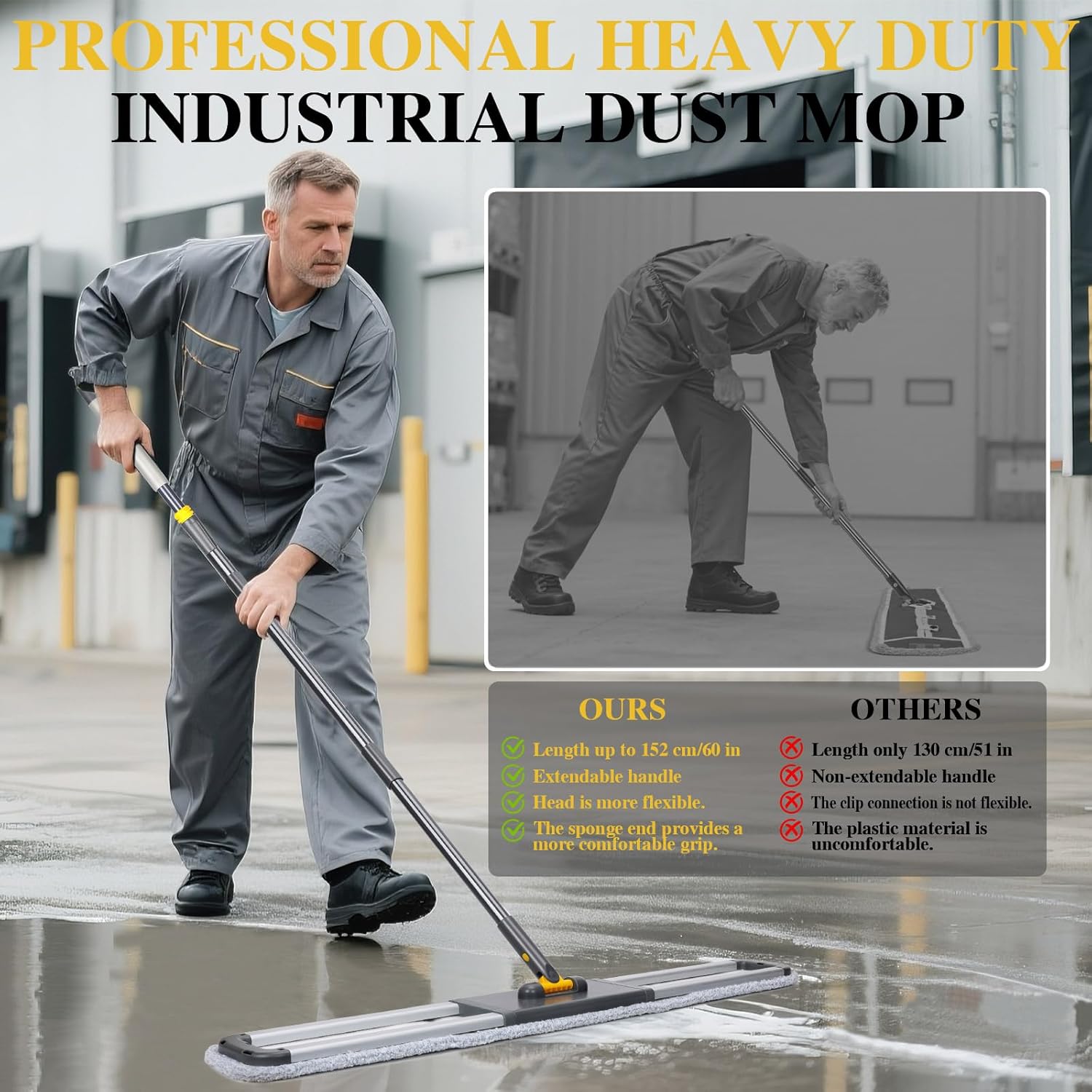 - Commercial-Grade Durability – Designed for heavy-duty cleaning, this industrial dust mop is perfect for commercial spaces, restaurants, and large homes.