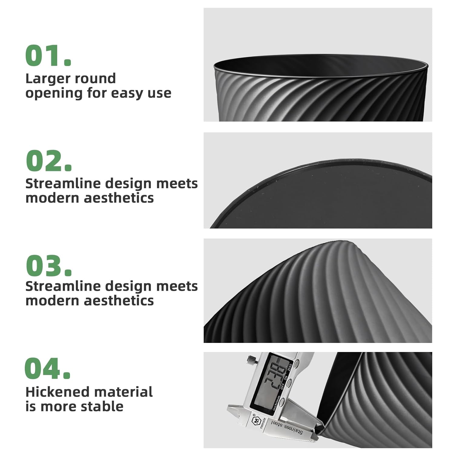- đȘăSturdy & Multipurposeă Built to last with impact-resistant plastic and a raised anti-slip base to reduce wear. Beyond trash, use them as storage bins for toys, laundry, or cleaning suppliesâor even as a mini flower pot! Effortlessly wipes clean for hygiene.