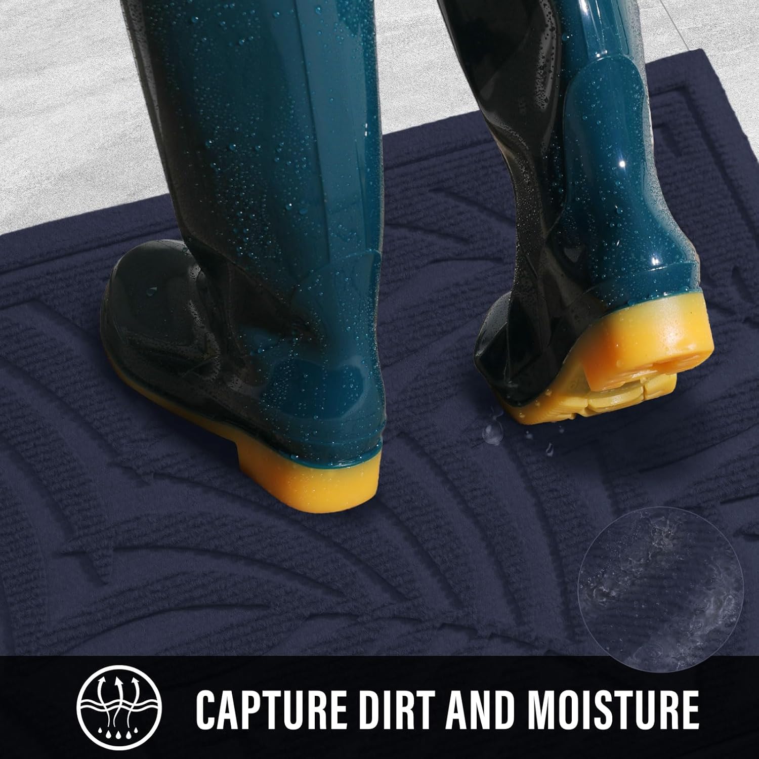 - Capture Dirt and Moisture: Doormat super absorbent, HIYARD outdoor welcome mat effectively capture mud and moisture. Deep groove design and rubber border helps capture water and prevents excess water from spilling onto the ground. Indoor door mat surface fibers scrape dust and debris from your shoes, boots, paws. Let the dirt stay out