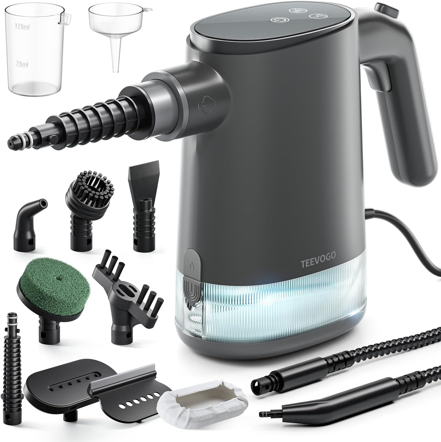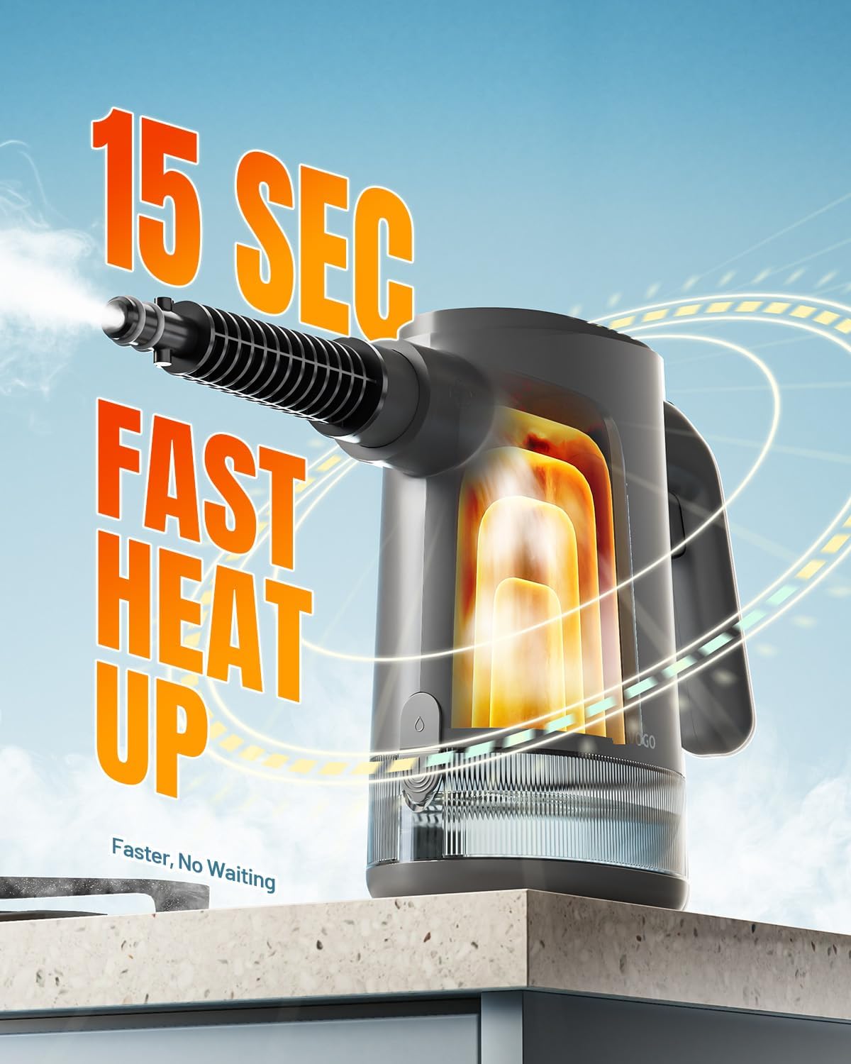 - Fast Heat-Up in 15 Seconds: The TEEVOGO handheld steam cleaner heats up in just 15 seconds, delivering 230°F high-temperature steam for immediate cleaning results. This hand held steam cleaner lets you skip the wait—just plug in and get powerful steam on demand with this professional steam cleaner for home