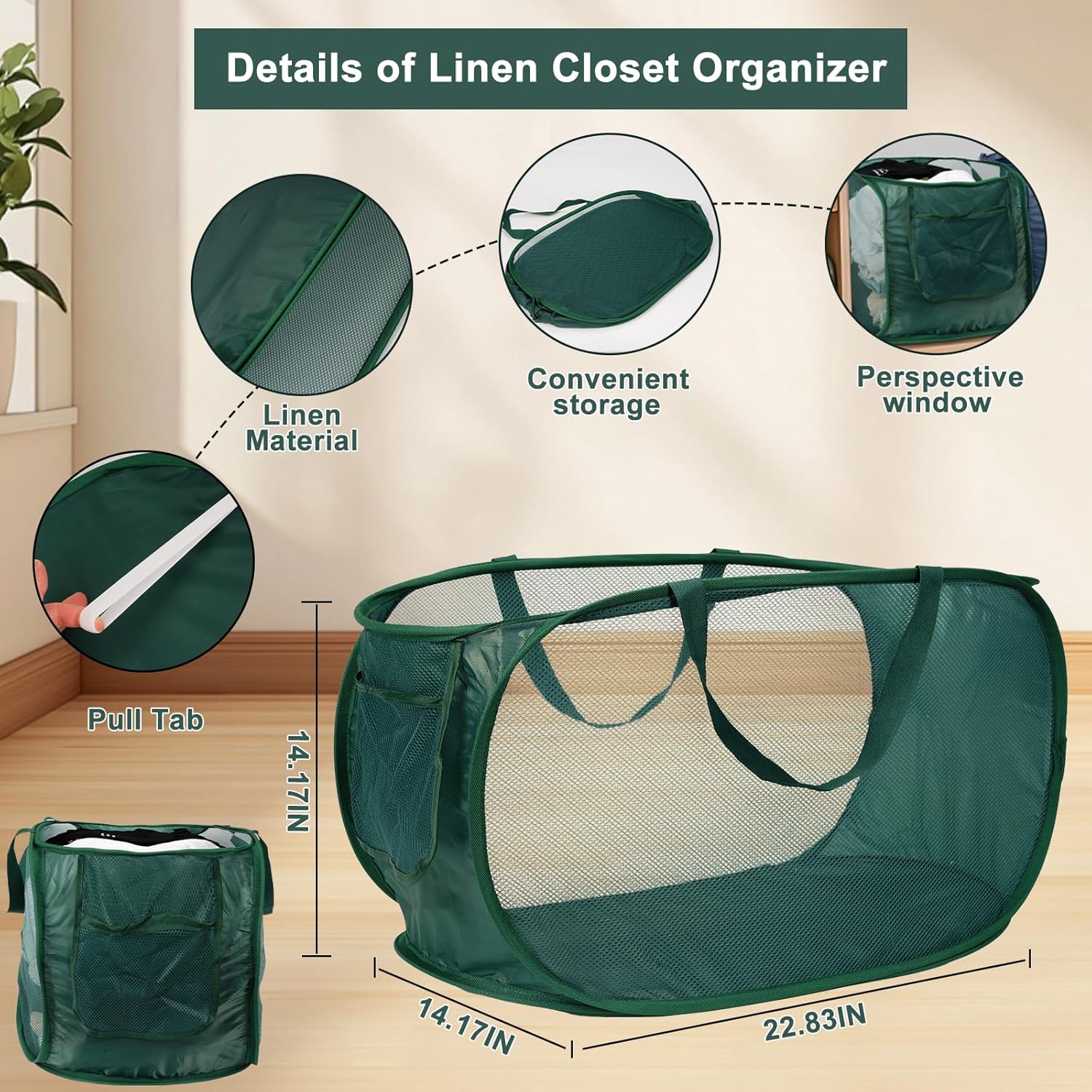 - 【Eco-Friendly Material 】 Made of high quality non woven fabrics, environmentally friendly materials, breathable and wear-resistant, no irritating odor. Fabric boxes come in sets of 4, each measuring 22.8L x 14.2"W x 14.2"H.