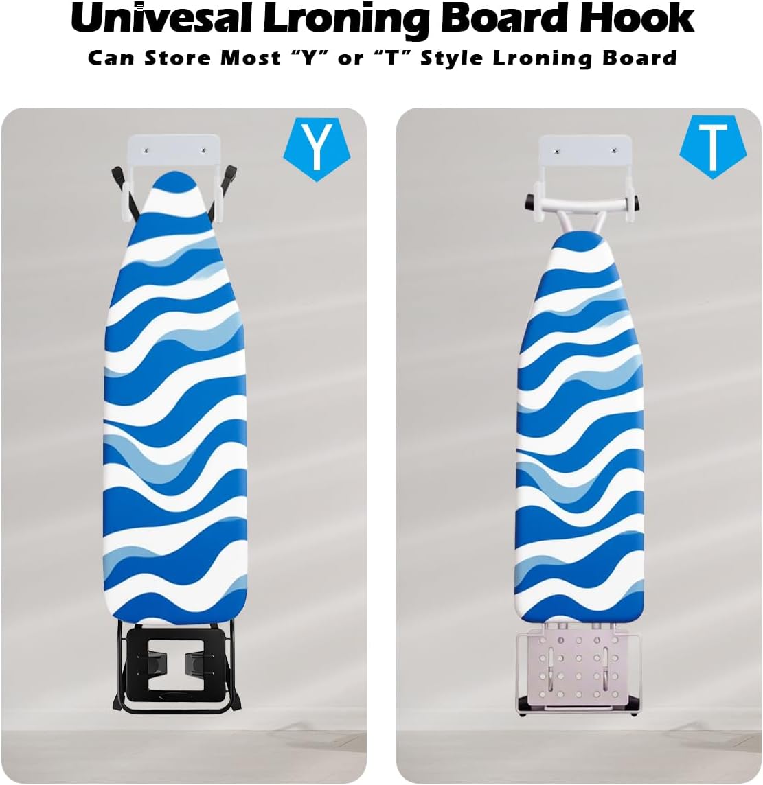- 【Versatile Storage for Any Space】Designed to fit most T/Y-shaped ironing boards, this wall mount holder isn’t just for ironing boards! Use it to organize towels, mops, folding chairs, or kids’ sports gear.Perfect for tight spots—install it behind laundry room doors, garage walls, or narrow closets to turn wasted vertical space into functional storage.