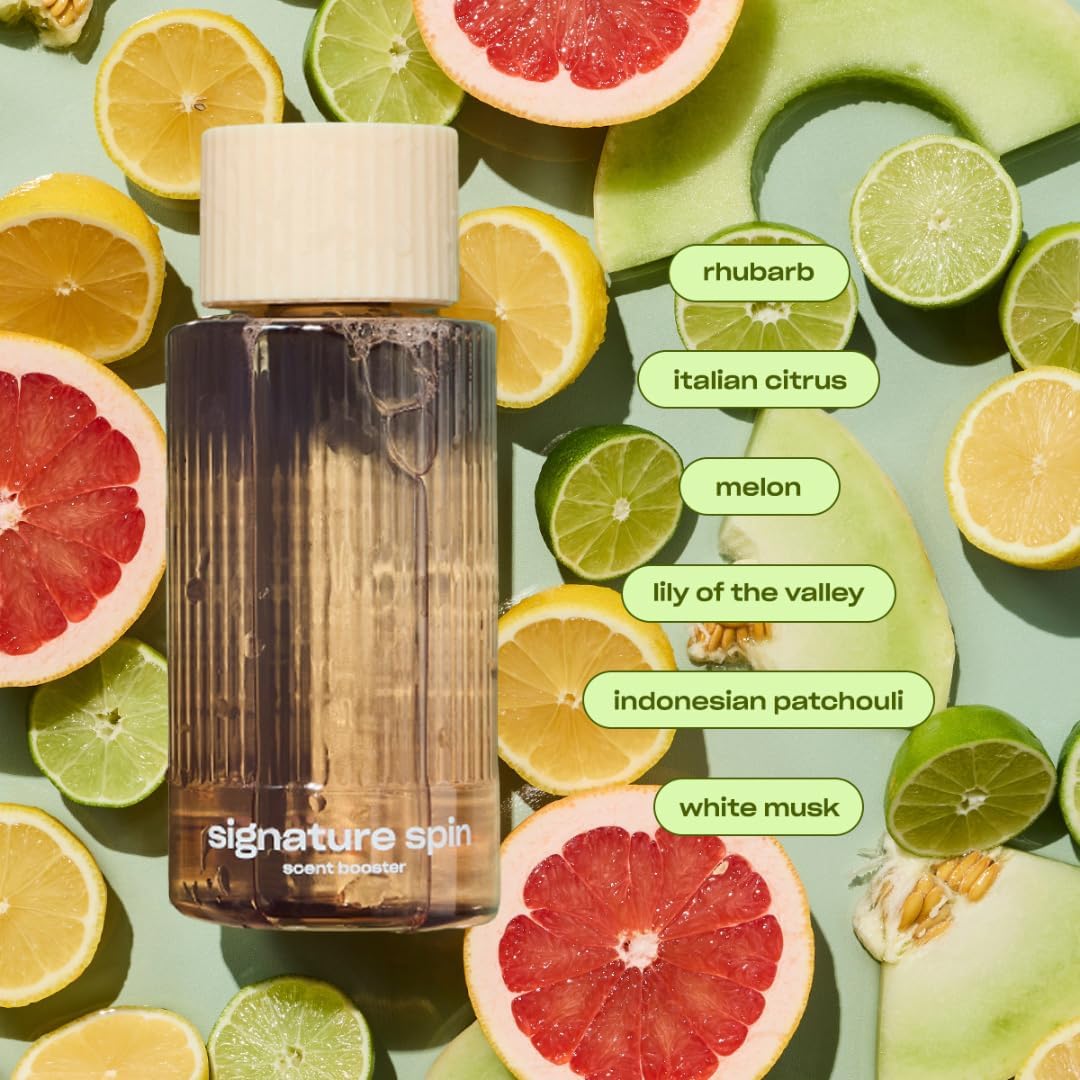 - SCENT PERFORMANCE: We think of Signature Spin as a classic clean with a crisp twist. Our Liquid Scent Boosters are designed to deliver fragrance through wash and dry cycles at any level.