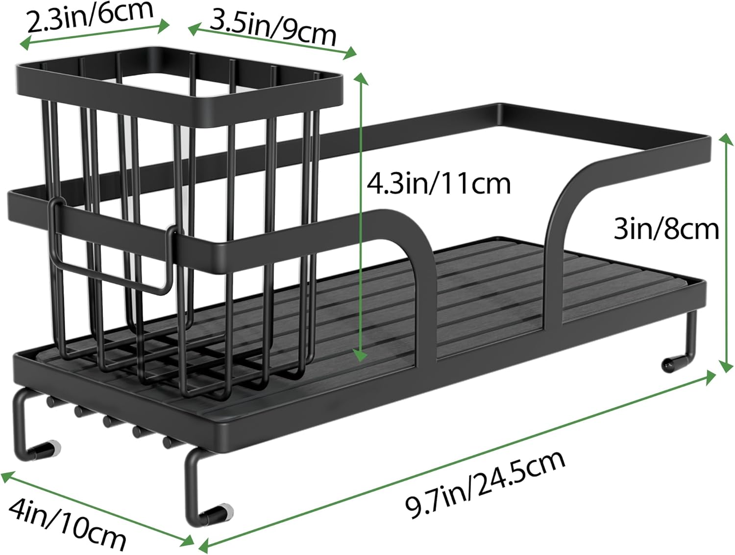 - Large Storage Capacity: Our kitchen sink caddy measures 9.7" x 4.2"x 3.2" and can hold cleaning bottles, sponges, dishwashing brushes, long handled brushes, and more