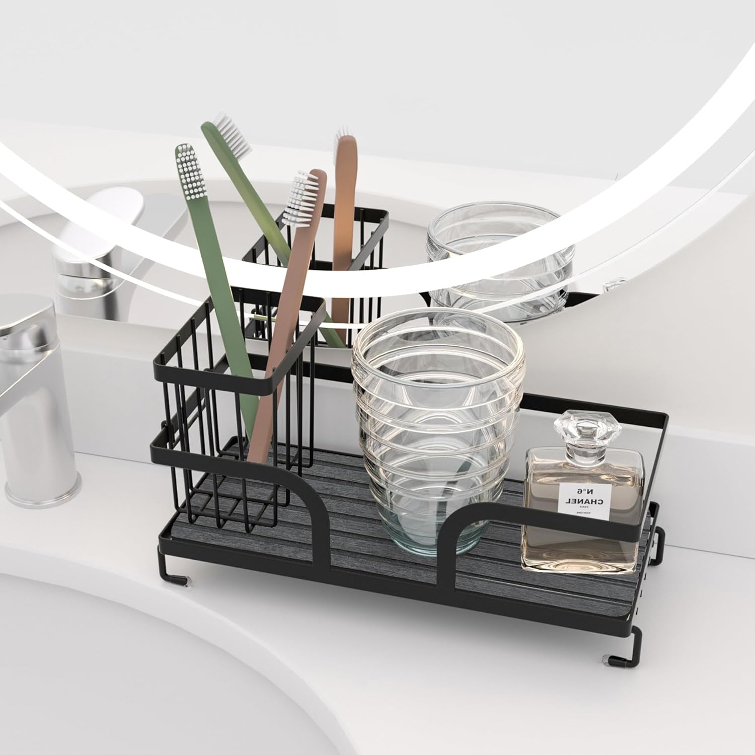 - SPACE-SAVING: Compact countertop organizer keeps cleaning supplies neatly arranged while maximizing your sink space