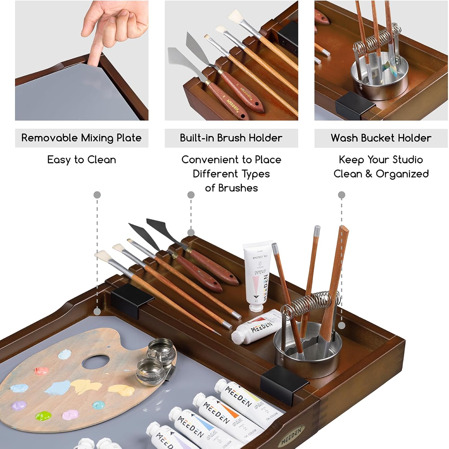 - Multifunctional Design: Come with a brush holder, store different kinds of brushes tidily. Unique round groove for inlaying brush washer, optimize creation space perfectly. Many functions in one, such as a practical and utility cart, deserve to have!