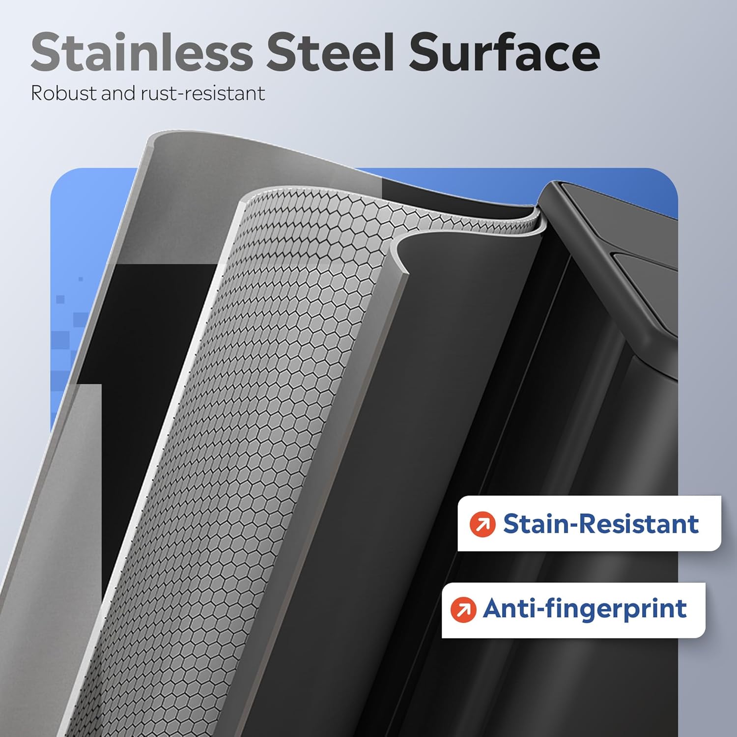 - ăModern Kitchen UpgradeăA brushed silver/black finish and minimalist design elevate your space. The trash canâs fingerprint-proof steel and seamless lids blend functionality with style, keeping your kitchen looking tidy and polished.