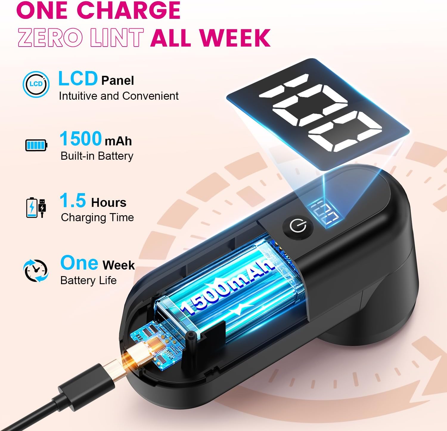 Fabric Shaver, Ziitty Lint Remover for Clothes, Type-C Rechargeable Lint Shaver with LCD Display & 6-Blade, Sweater Shavers to Remove Pilling,Fuzz Remover Fabric Shaver for Clothing and Furniture