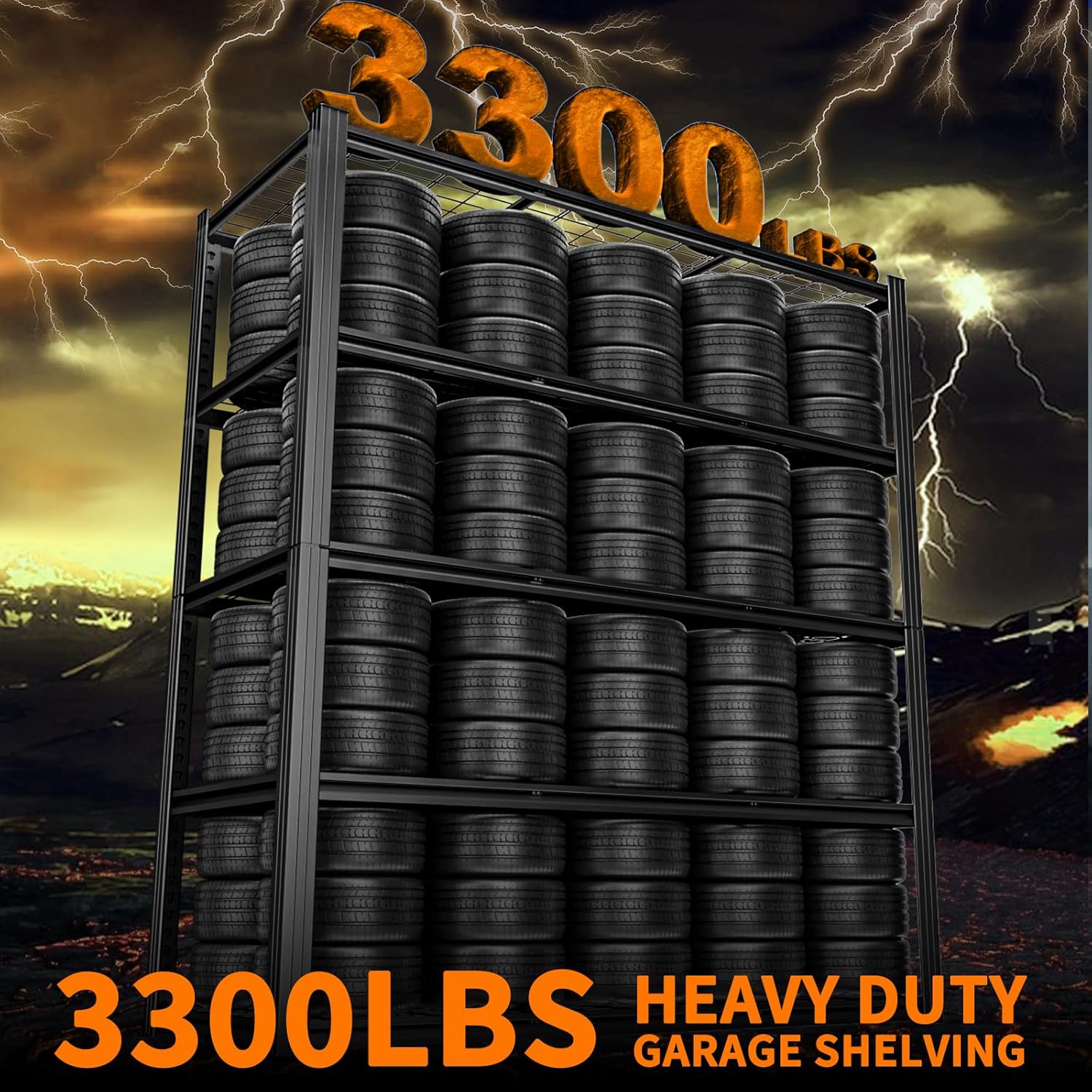 - ă3300 LBS Heavy Duty ShelvingăThis heavy duty garage shelving unit has thickened double metal legs. Made of high-quality metal, each solid thickened metal shelving with 2 upgrade support strips beneath can hold up to 660 lbs, with a total bearing capacity of 3300 lbs, which makes industrial garage shelves heavy duty more stable and solid than normal metal shelves for storage and more stuff can be stored.